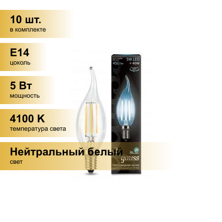 Лампочка светодиодная E14 Свеча на ветру 5W нейтр белый свет 4100K упаковка 10 шт. Gauss Filament