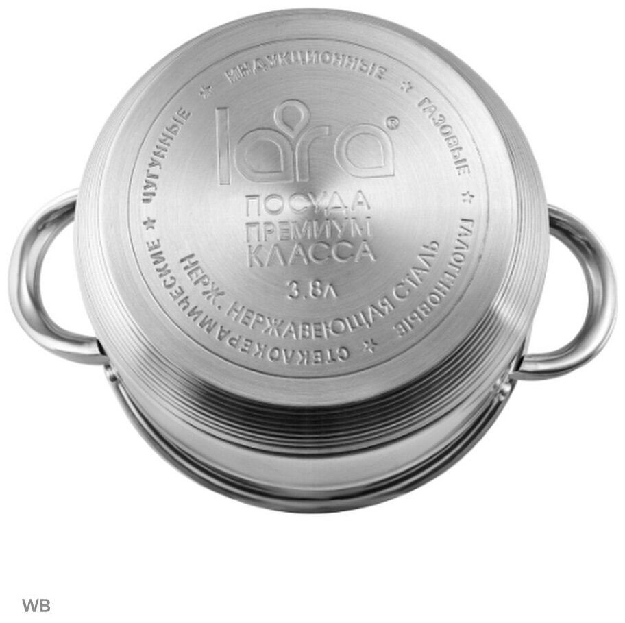 Кастрюля из нержавеющей стали LARA LR02-402 AURORA/ 3.8 л/ стальные ручки/ капсулированное/ индукционное дно/ крышка с паровыпуском
