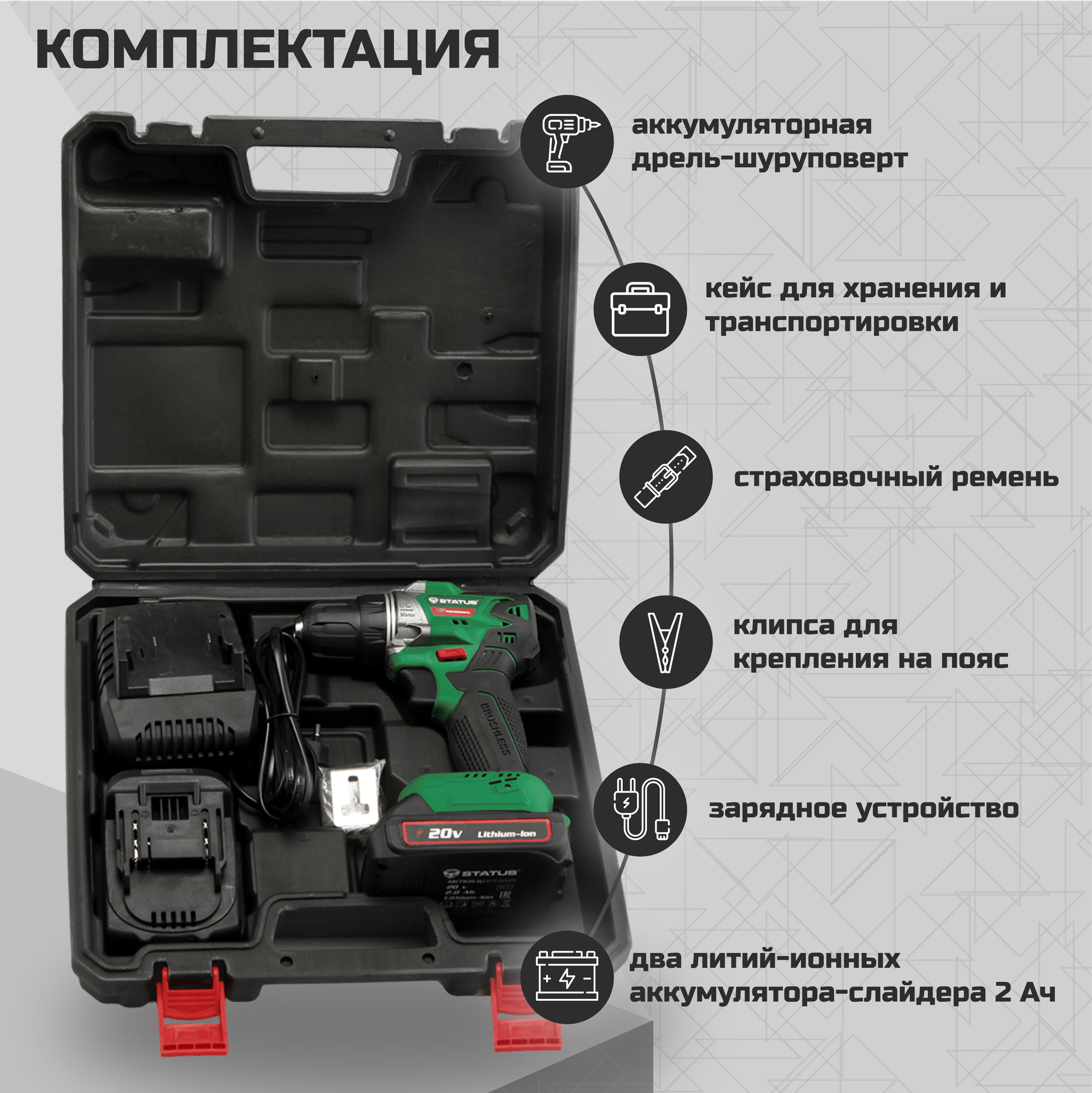 STATUS CTW20-2LI Дрель-шуруповерт с АКБ 20.0В 2.0Ач (2АКБ Li-Ion,кейс) бесщеточный STATUS