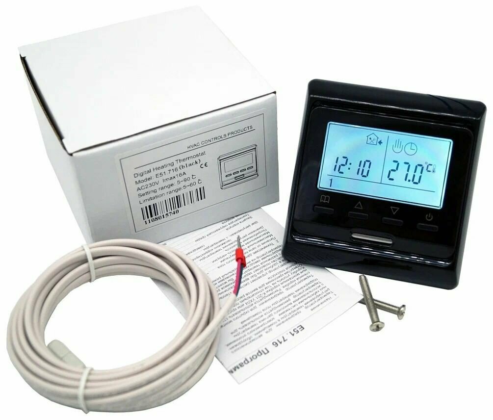 Терморегулятор с выносным датчиком температуры (пола) и с датчиком воздуха E51.716 / черный