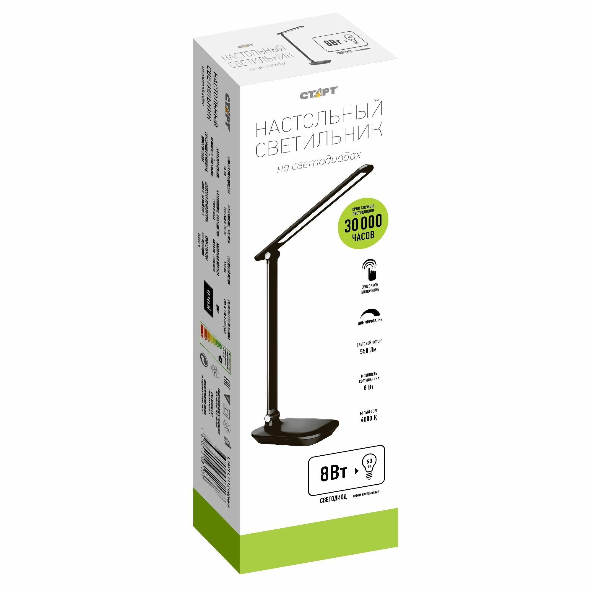 Настольный светодиодный светильник, старт СТ112 черный, LED 8 Вт, 550 Лм (сенсор + диммер)