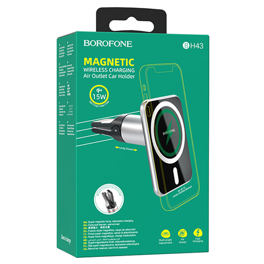 Держатель c беспроводной зарядкой в воздуховод Borofone BH43 (MagSafe) 15W магнитный черный