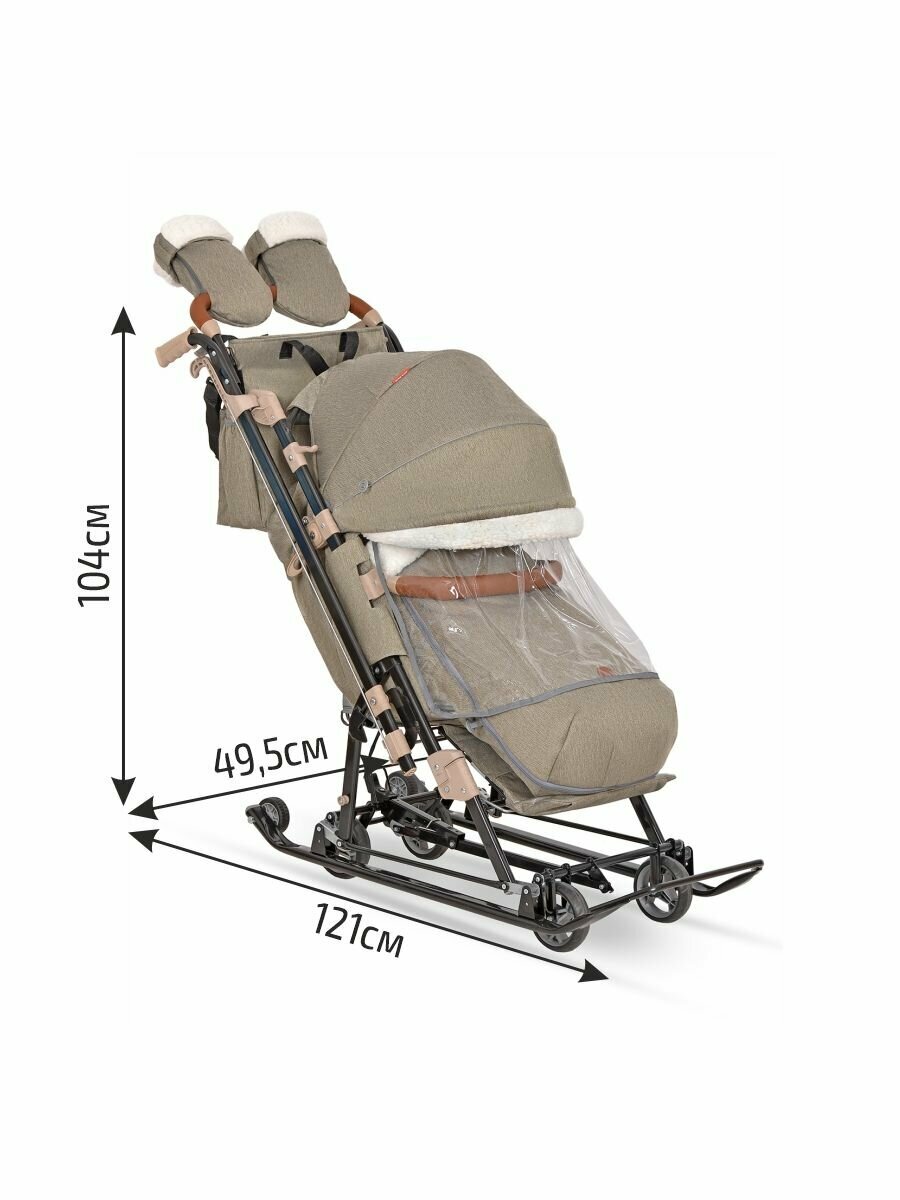 Санки-коляска, детские, зимние на колесах Ника Детям 7-8К оливковый