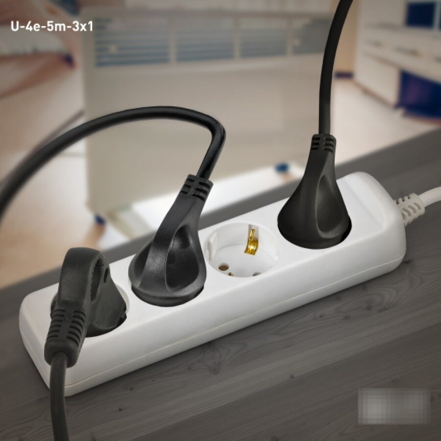 ЭРА Б0028375 Удлинитель U-4e-5m-3x1 с заземлением 4 гнезда 5 м {полипропилен, 3х1 мм2}