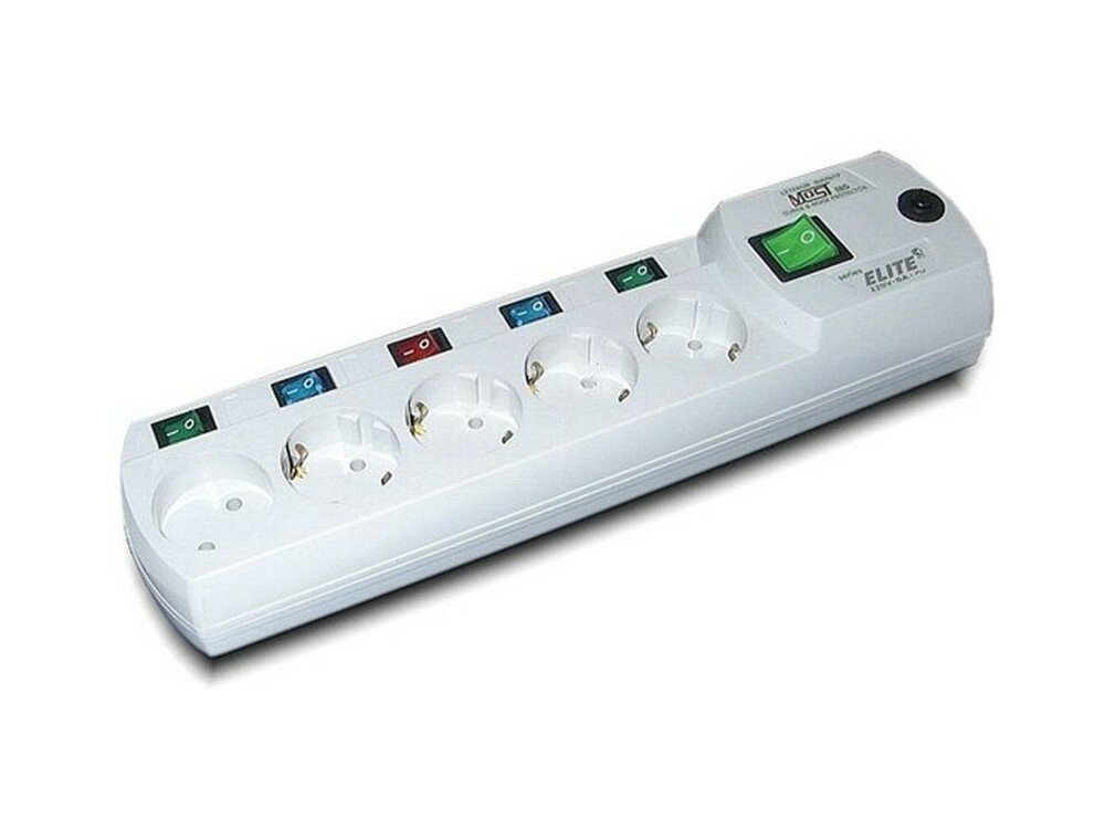 Сетевой фильтр MOST Elite ERG, 5 розеток, с/з, 10А / 2200 Вт белый 2 м 335 мм 85 мм 60 мм 0.75 м² 5