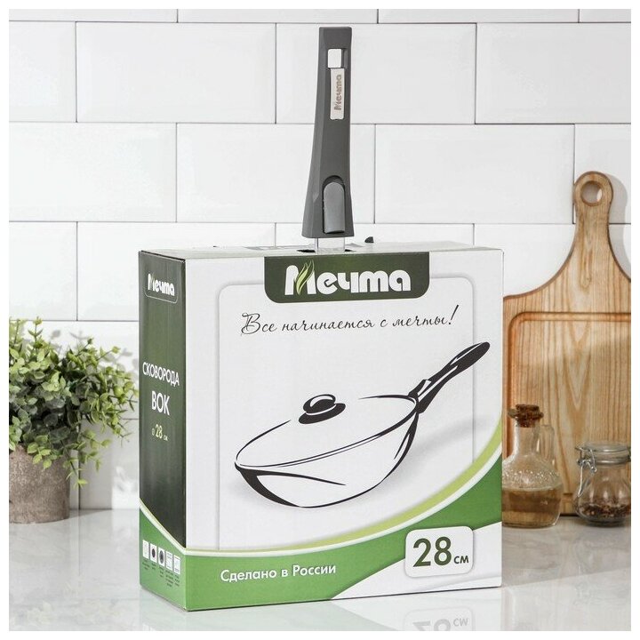 Сковорода "Гранит ВОК", d=28 см, съёмная ручка, стеклянная крышка, антипригарное покрытие, цвет серый интересное: