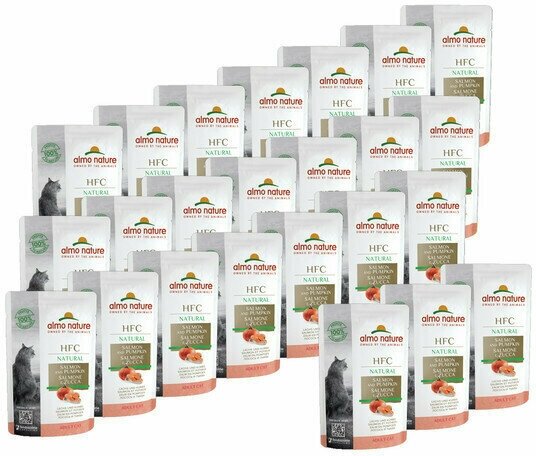 Almo Nature - Паучи для кошек с лососем и тыквой (HFC - Natural - Salmon and Pumpkin), 24штx55гр 1.32кг