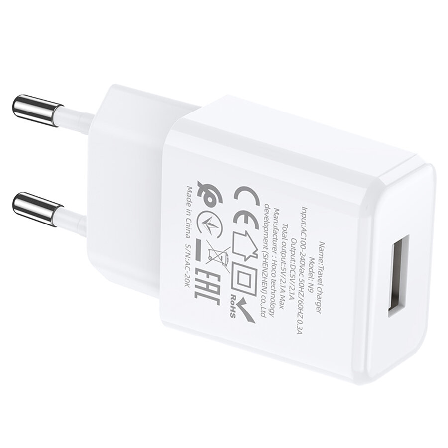 Hoco Сетевое зарядное устройство Hoco N9, USB - 2.1 А, кабель Lightning 1 м, белый