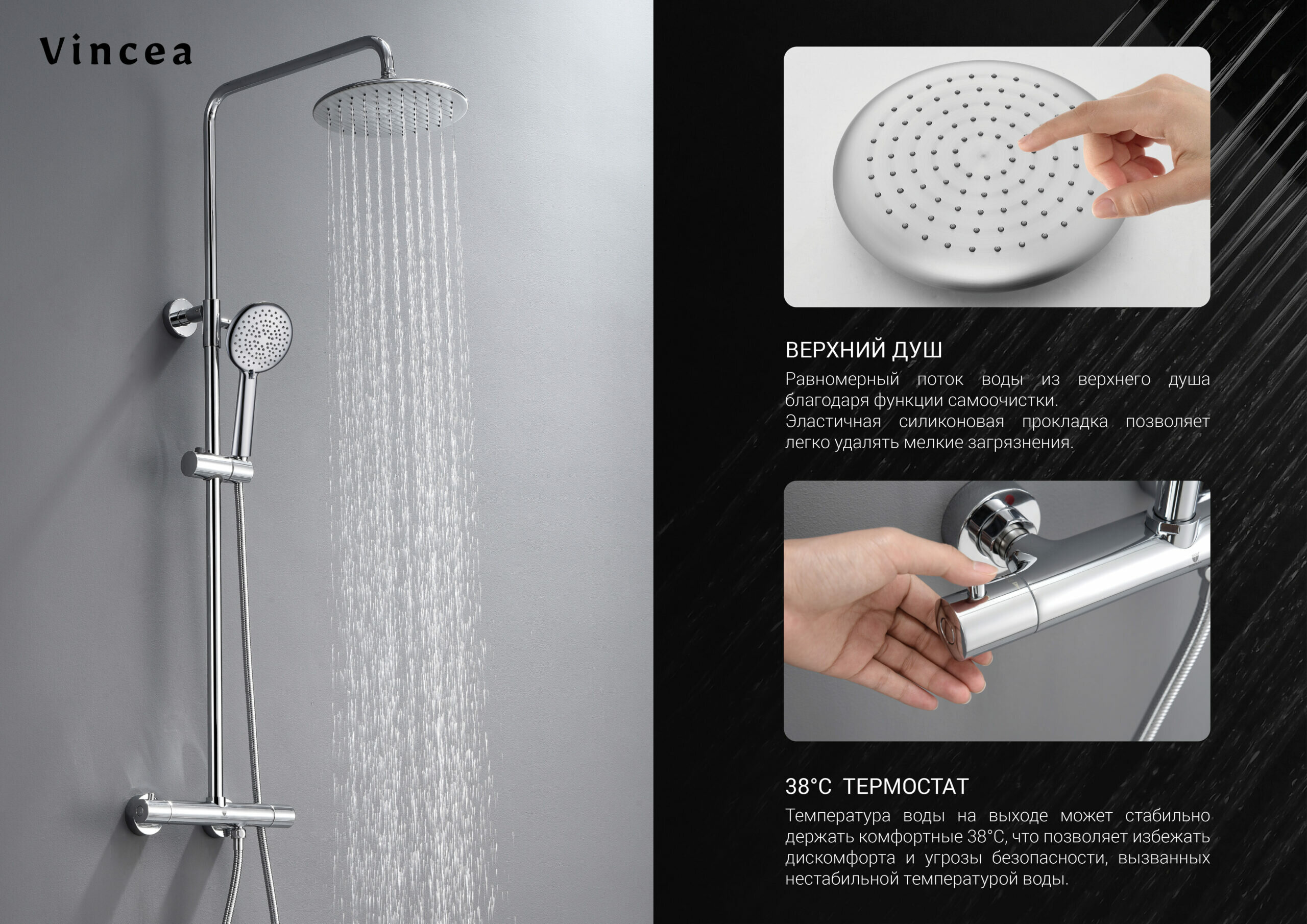 Душевая система Vincea Esse с термостатом, черная (VSFS-1E1TMB)