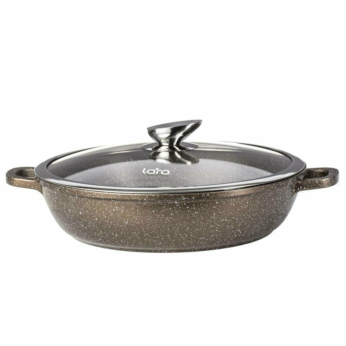 LR02-212 Сотейник LARA серия Rio 28см, 3.4л, мрамор, капсулированное индукционное дно, крышка