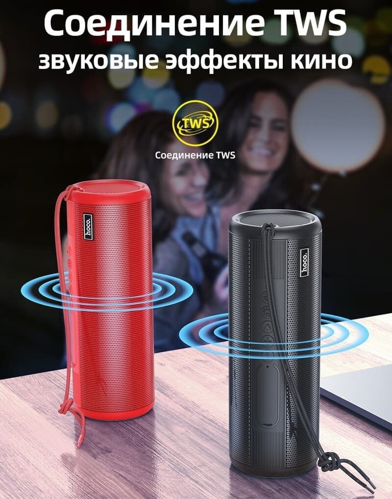 Колонка HOCO Bora HC11, Bluetooth, с фонариком, 1200mAh, черная