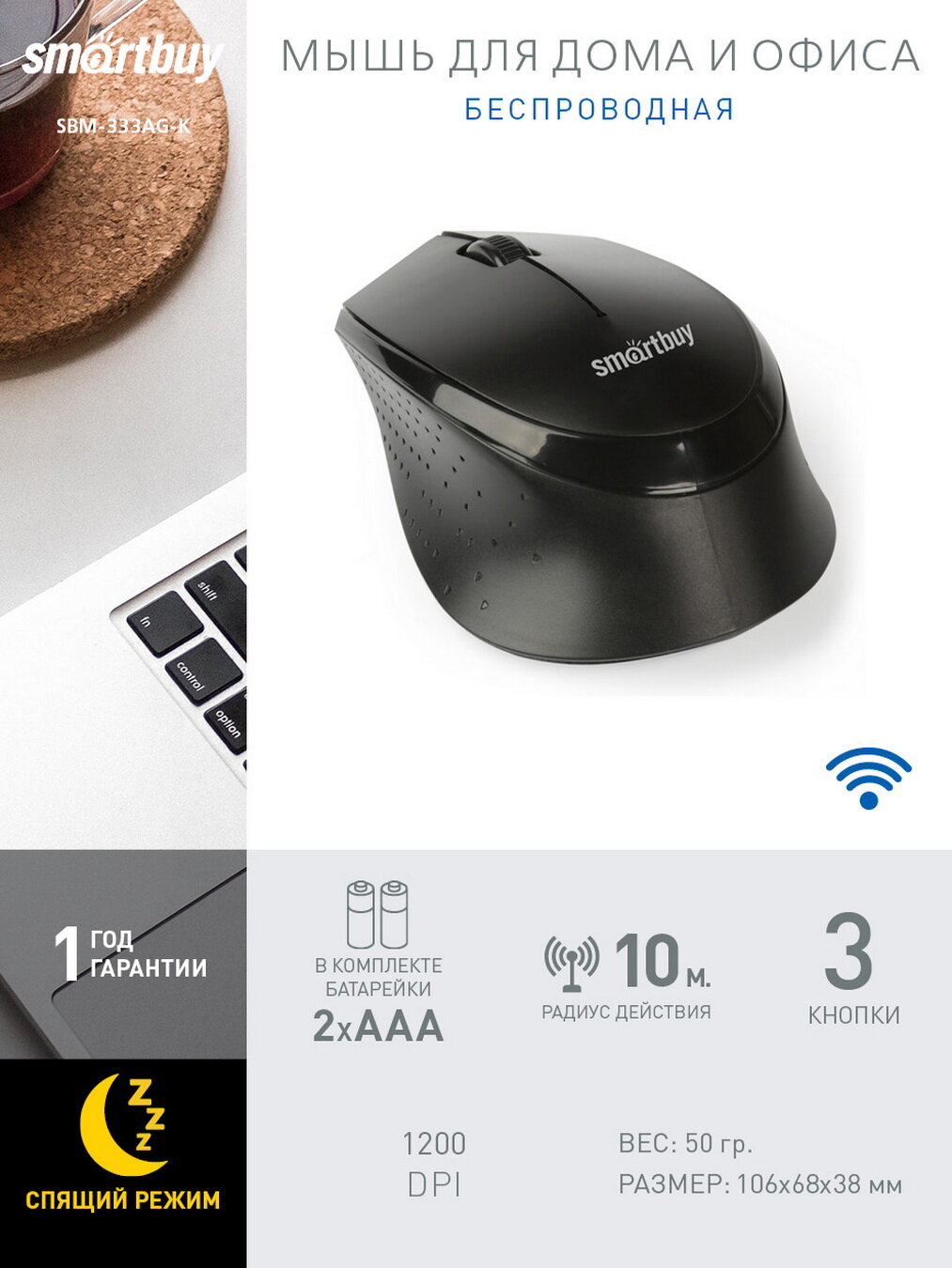 СохранитьМышь беспроводная SmartBuy 333AG-K ONE черная (SBM-333AG-K) интересное: