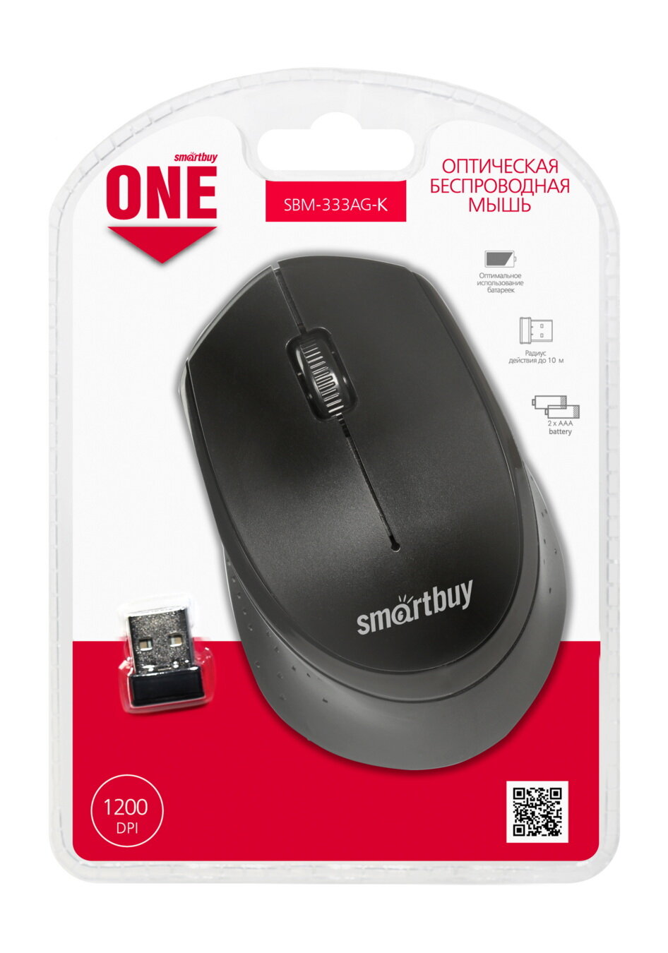 SmartBuy One Wireless Optical Mouse (sbm-333ag-k) (rtl) USB 3btn+Roll, беспроводная .