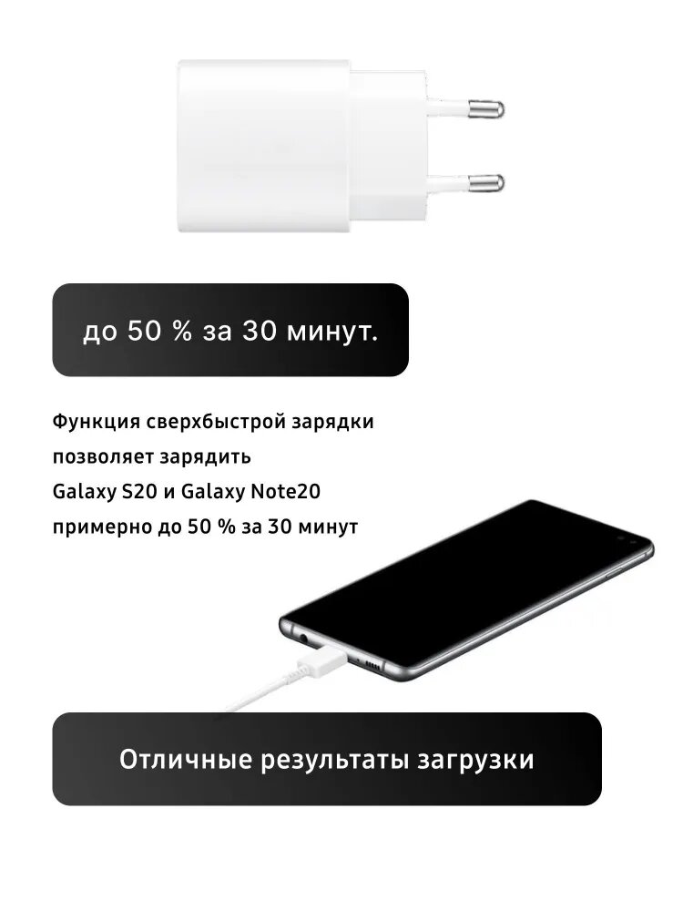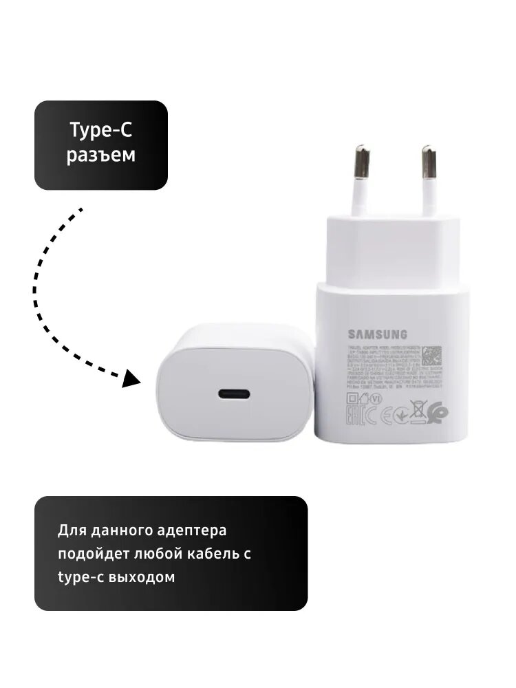 Блок питания для Samsung 25W PD Power Adapter USB-C/ Сетевой адаптер для Самсунг 25вт ЮЗБ тайп -с, черный, модель EP-TA800