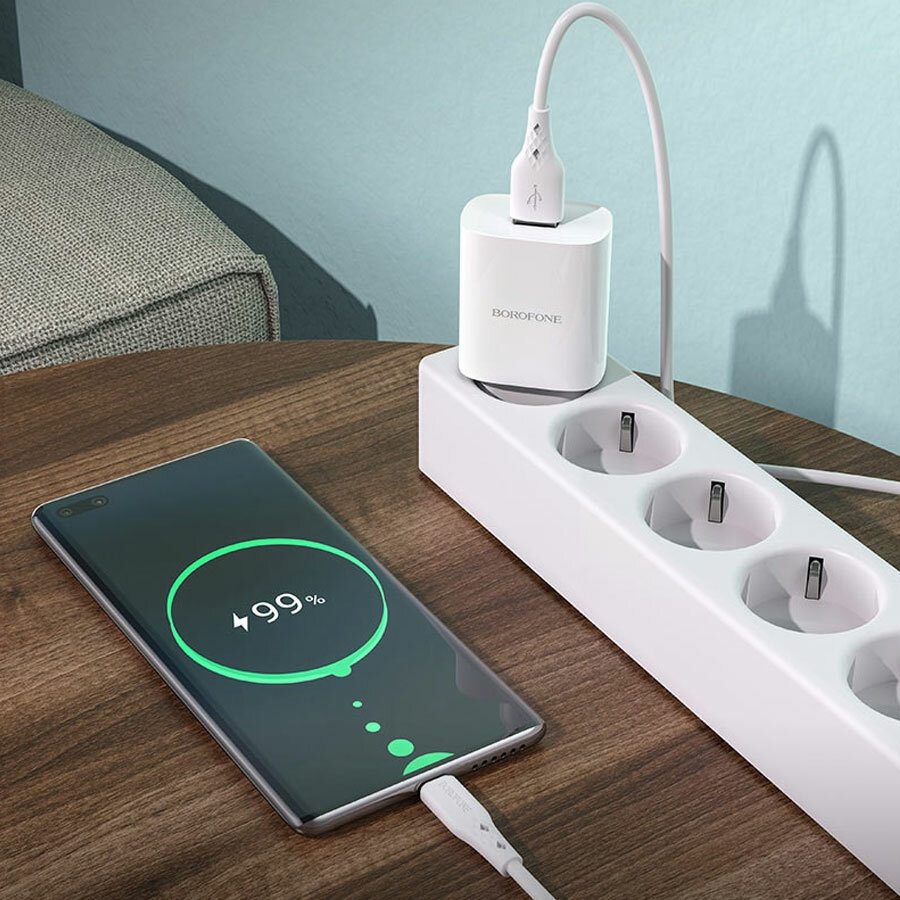 Зарядное устройство BOROFONE BN1 Innovative USB + Кабель USB-Type-C, 2.1A, белый