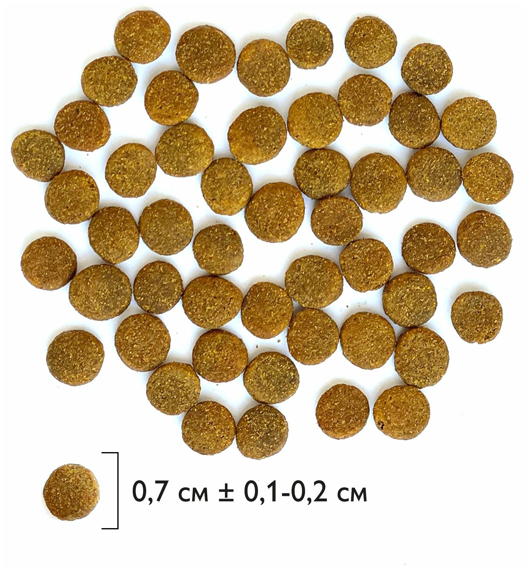 | Состав | дегидрированное мясо курицы 37 %, маис цельнозерновой, маисовый протеин, рис, жир куриный (источник Омега-6 жирных кислот), свекольная пульпа, гидролизованная и дегидратированная печень 2,5 %, яблоки, дрожжи (источник маннанолигосахаридов), витаминно-минеральный комплекс, рыбий жир (источник Омега-3 жирных кислот), таурин, топинамбур (источник фруктоолигосахаридов), клюква, антиокислитель, экстракт юкки Шидигера |