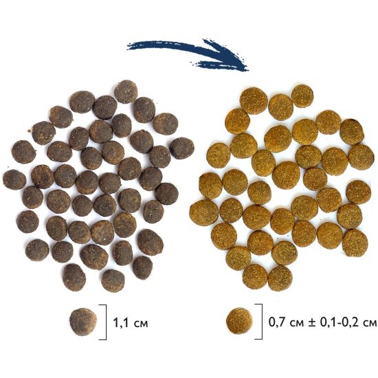 | Состав | дегидрированное мясо курицы 37 %, маис цельнозерновой, маисовый протеин, рис, жир куриный (источник Омега-6 жирных кислот), свекольная пульпа, гидролизованная и дегидратированная печень 2,5 %, яблоки, дрожжи (источник маннанолигосахаридов), витаминно-минеральный комплекс, рыбий жир (источник Омега-3 жирных кислот), таурин, топинамбур (источник фруктоолигосахаридов), клюква, антиокислитель, экстракт юкки Шидигера |