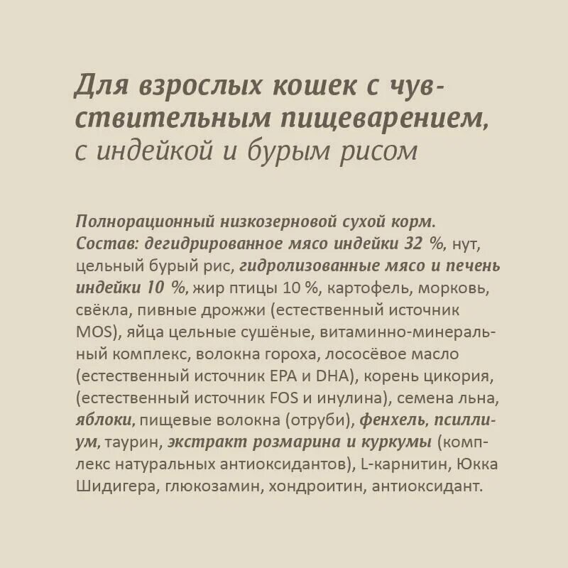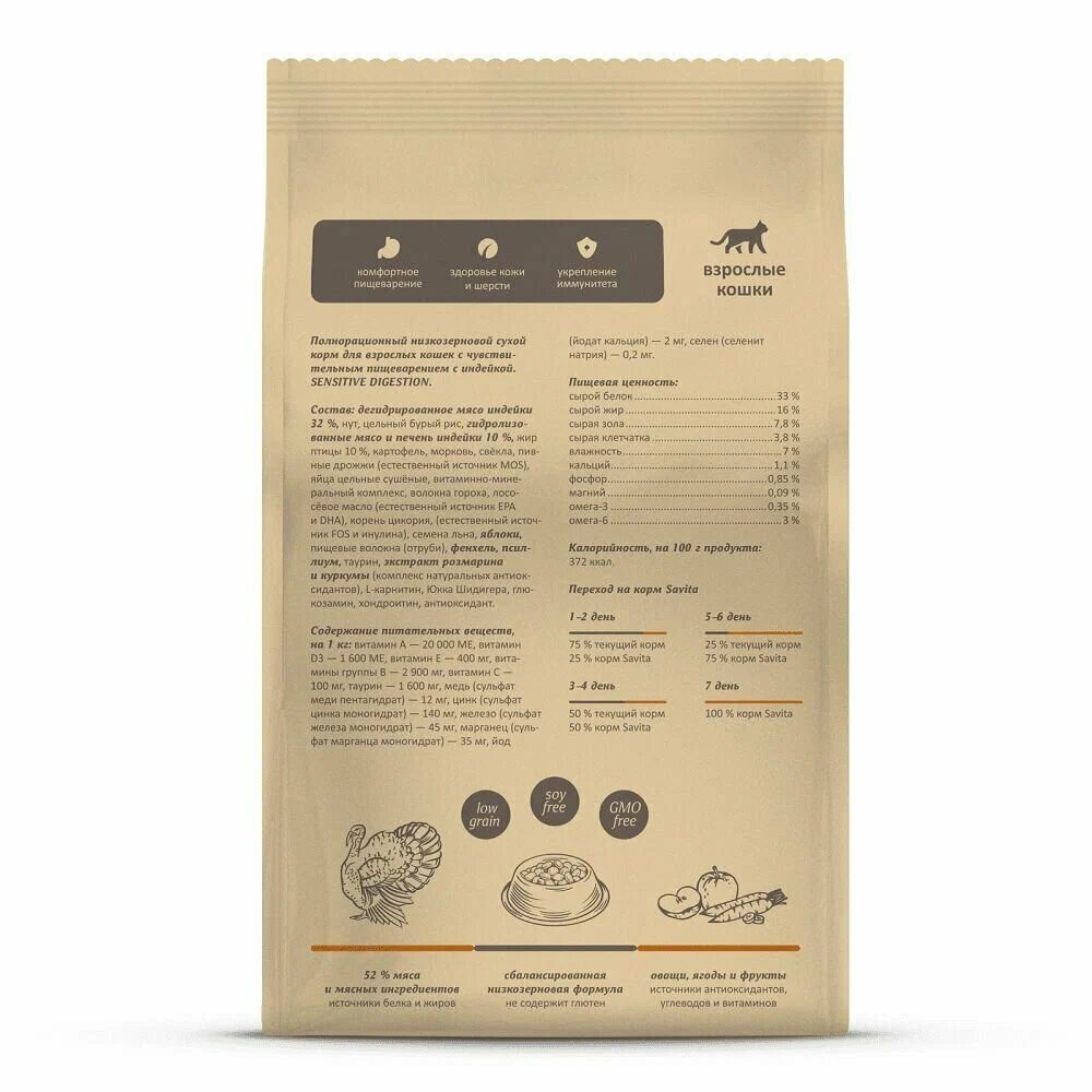 Купить SAVITA для взрослых кошек с чувствительным пищеварением с индейкой и бурым рисом 2 кг