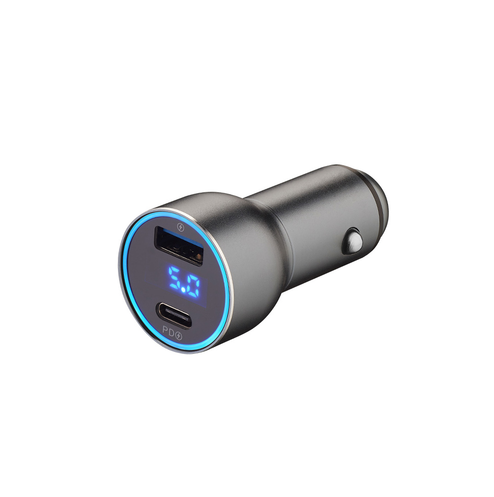 Автомобильное зарядное устройство USB-A + USB-C, PD, QC3.0, 36W, дисплей, алюминий, графит, DEPPA