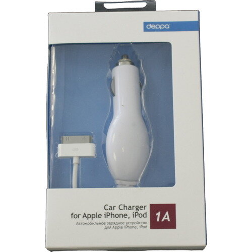 Зарядное устройство автомобильное Deppa Apple 30-pin, ток 1А, белое (22111)