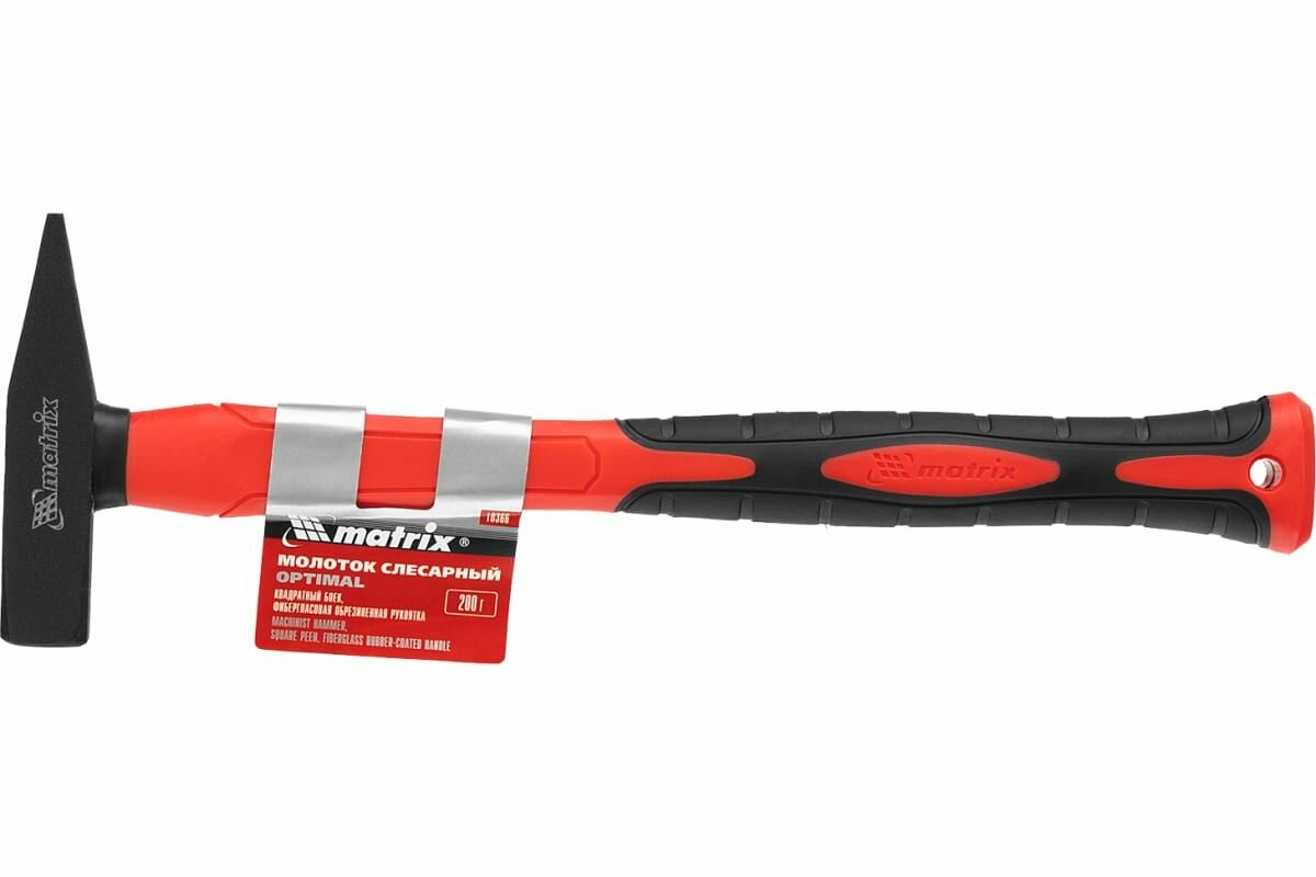 Молоток слесарный optimal, 200 г, фибергласовая обрезиненная рукоятка, квадратный боек Matrix (10366)