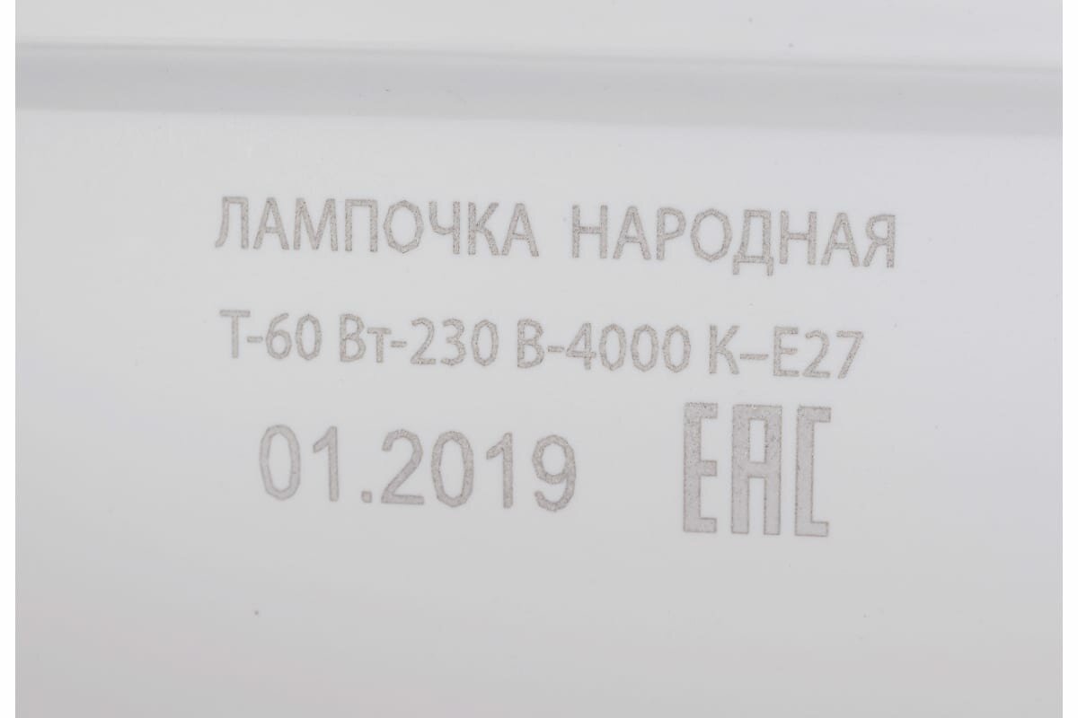 Лампа светодиодная T-60 Вт-230 В-4000 К–E27 (160x265 мм) народная