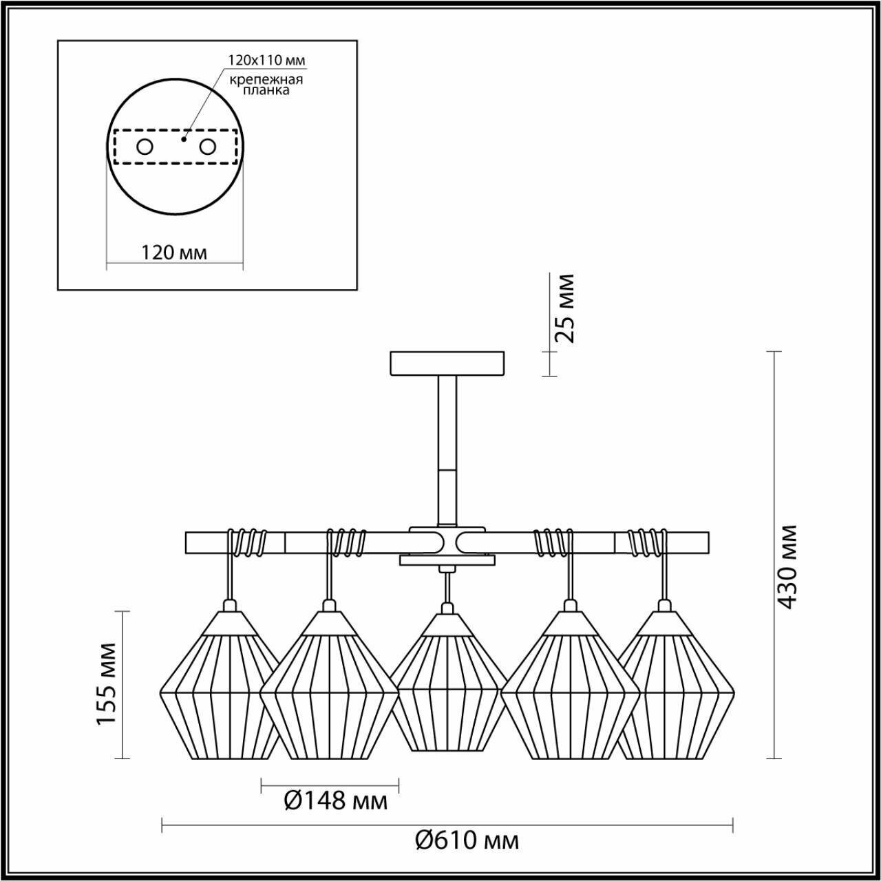 Люстра потолочная LUMION COUNTY JUSTINE 4564/5C, E27, 300 Вт, кол-во ламп: 5 шт., цвет: черный, дерево