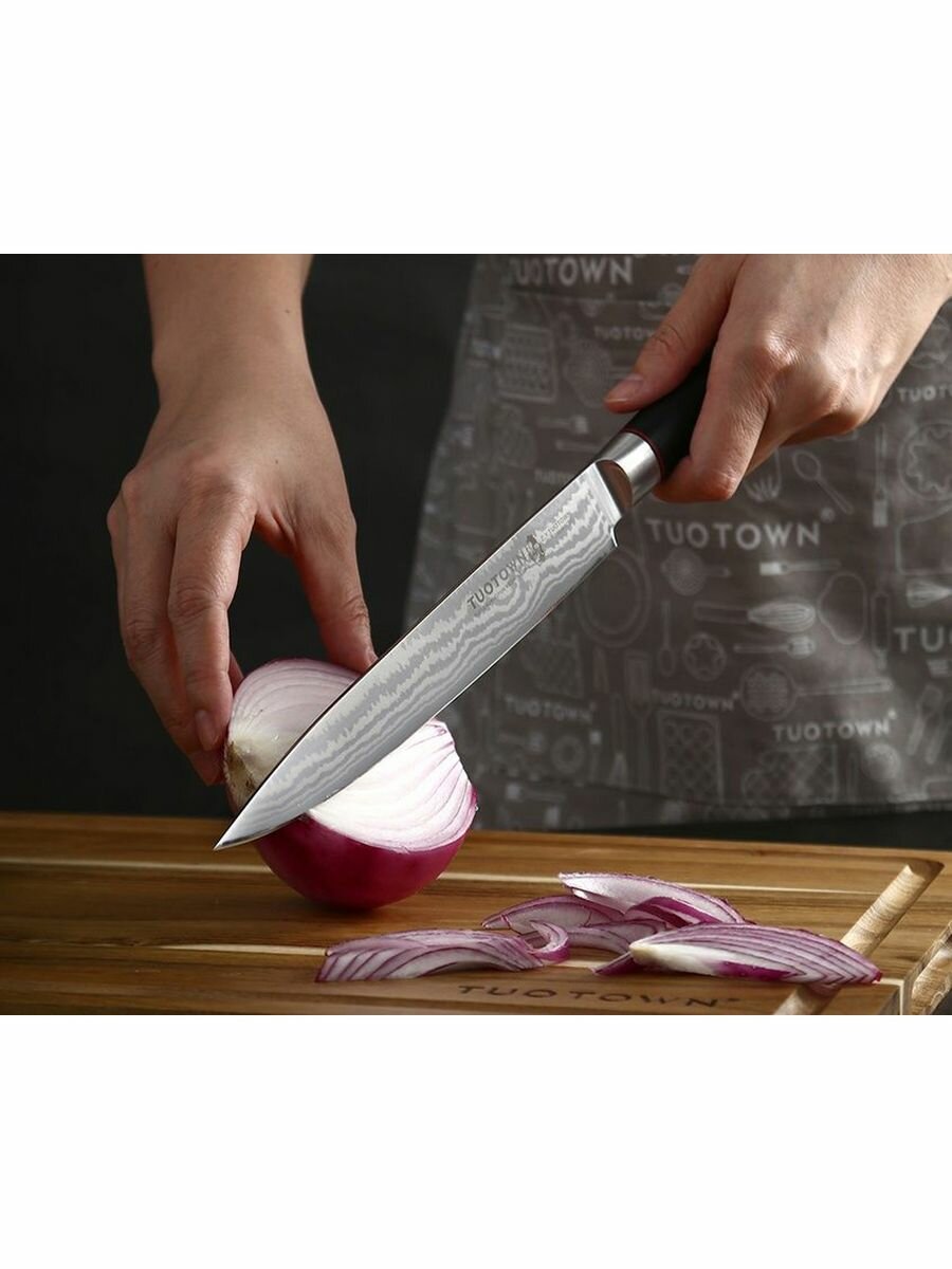 Нож кухонный профессиональный для нарезки, TUOTOWN, длина клинка 20 см, сталь ламинация VG10, рукоять G10