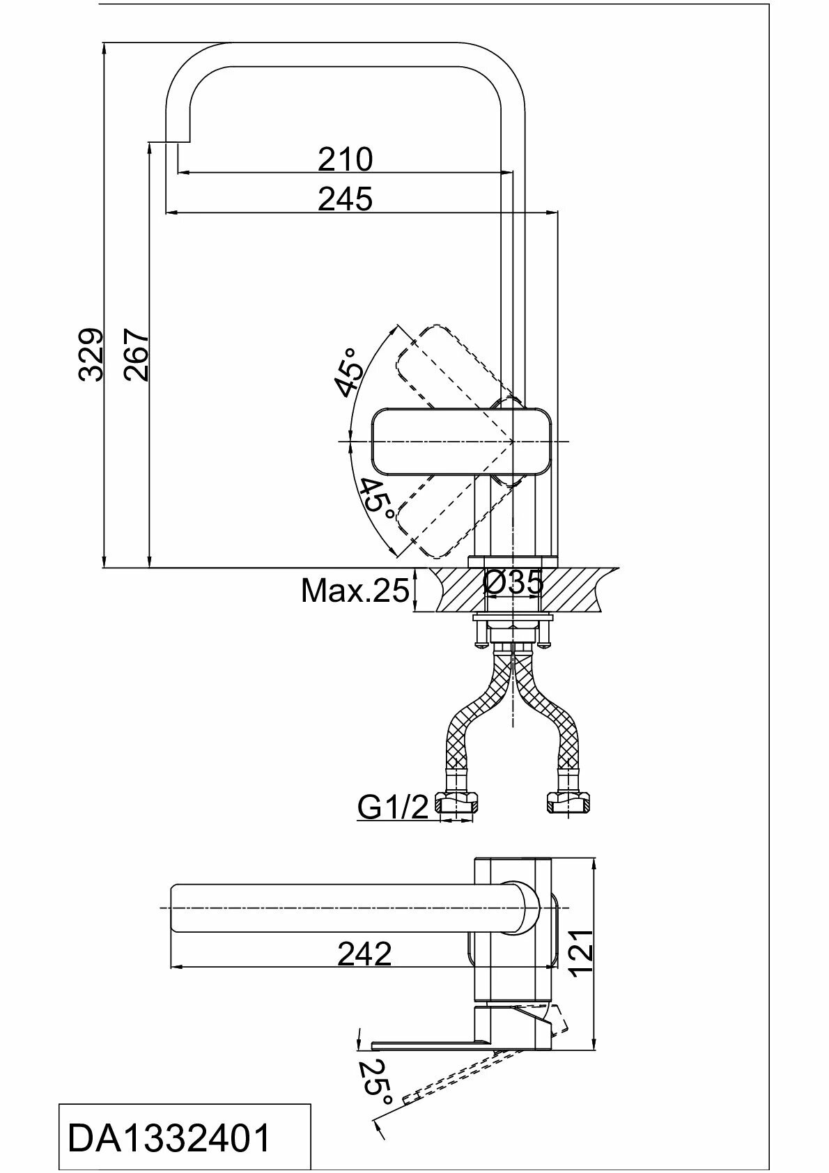 | Высота излива | 267 мм |