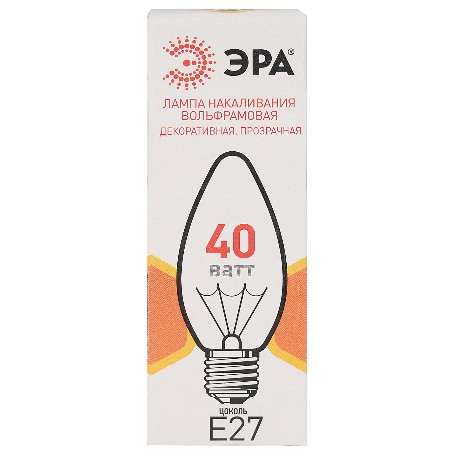 Лампа 40Вт Б0039128 ЛОН B36 40Вт Е27 390Лм 2700К накаливания "свеча" прозрачная ЭРА (14 шт. в комплекте)