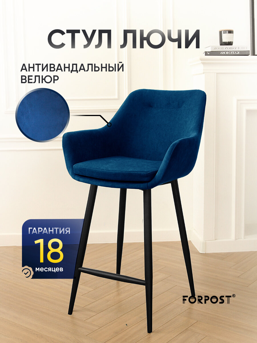 Барный стул со спинкой для кухни Лючи, блю интересное: