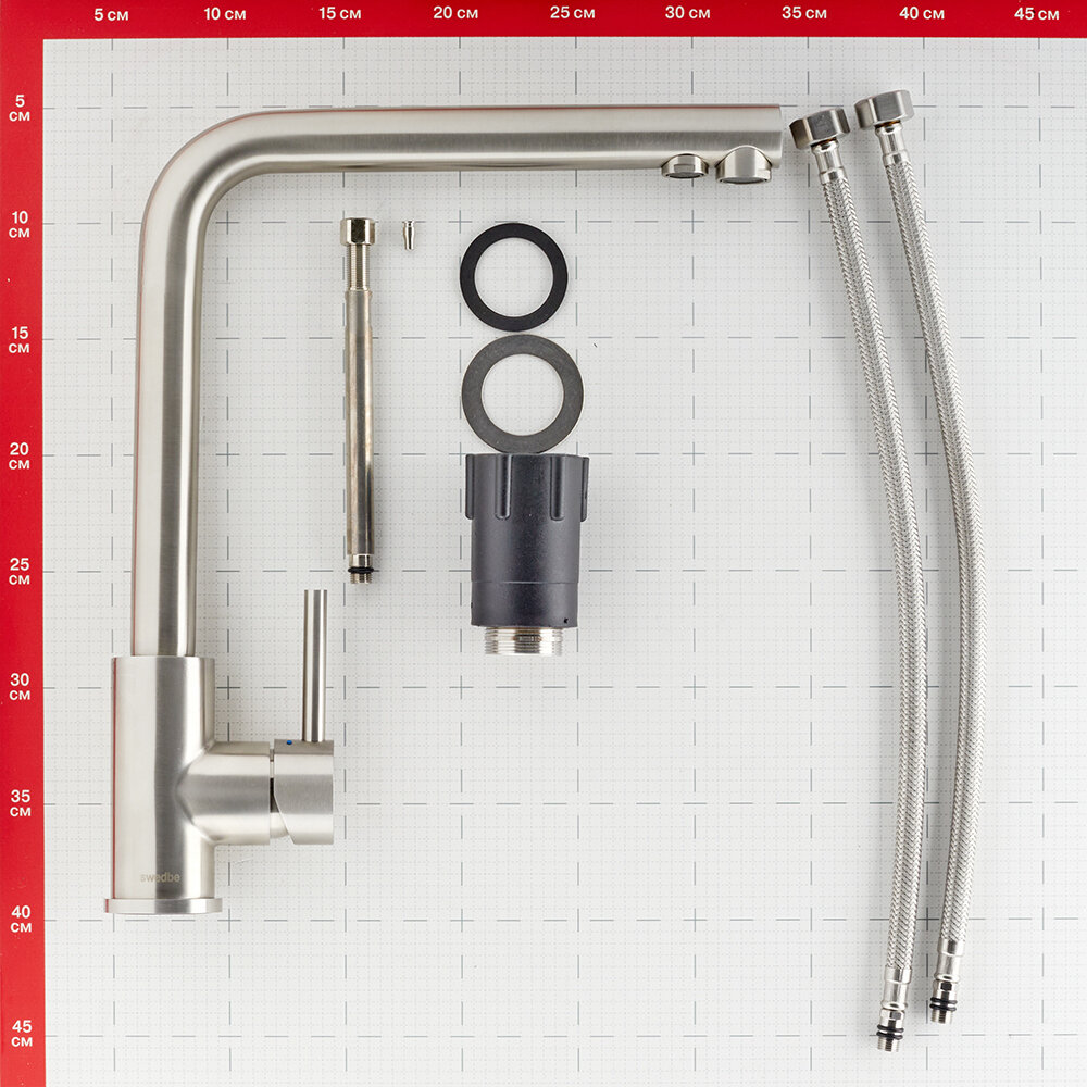 Смеситель для кухни Swedbe Selene Plus сталь с высоким изливом с подключением к фильтру (8540)