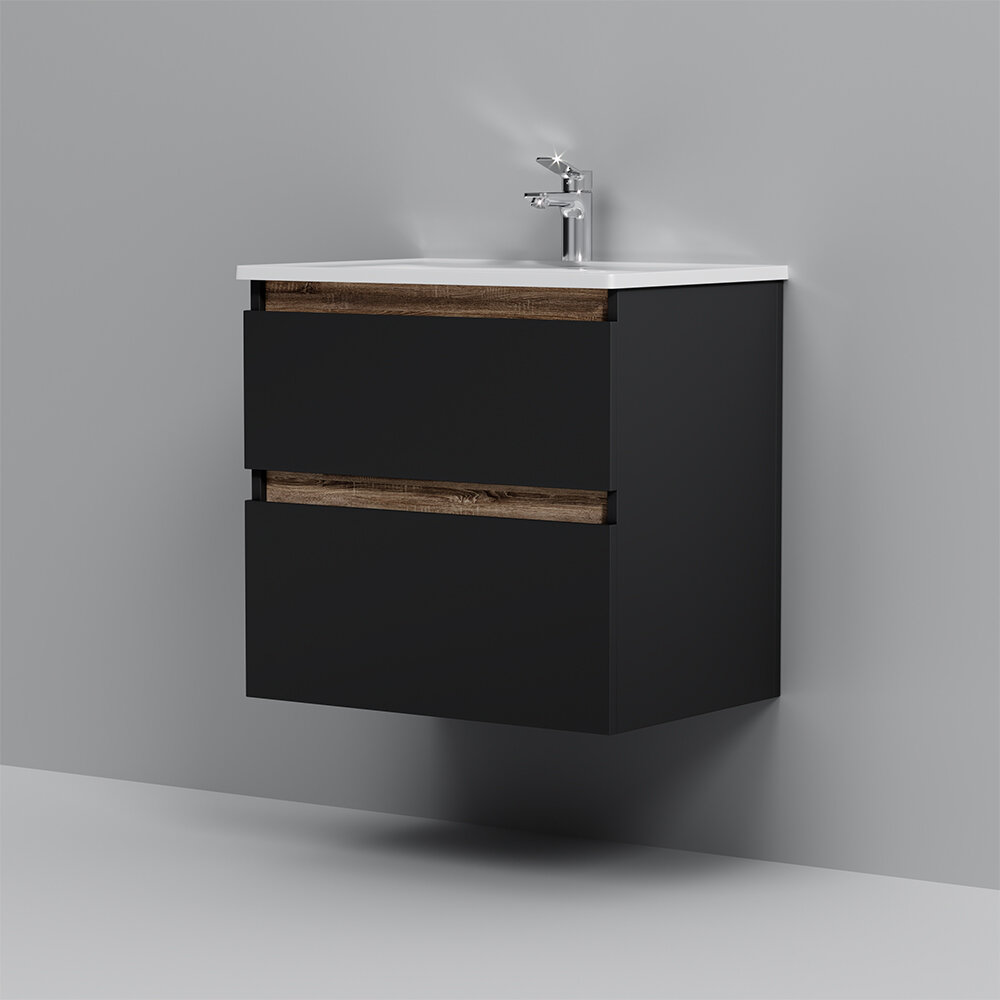 M85AFHX0652BM X-Joy, База под раковину, подвесная, 65 см, 2 ящика, черный матовый