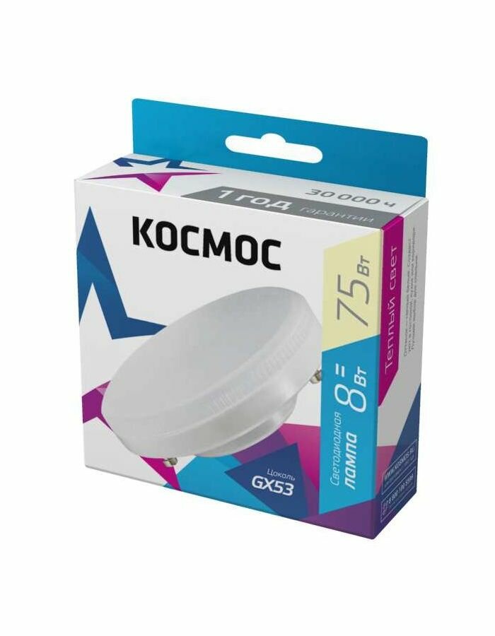 Лампа светодиодная КОСМОС 3000K, GX53, 8 Вт, 6500 К интересное: