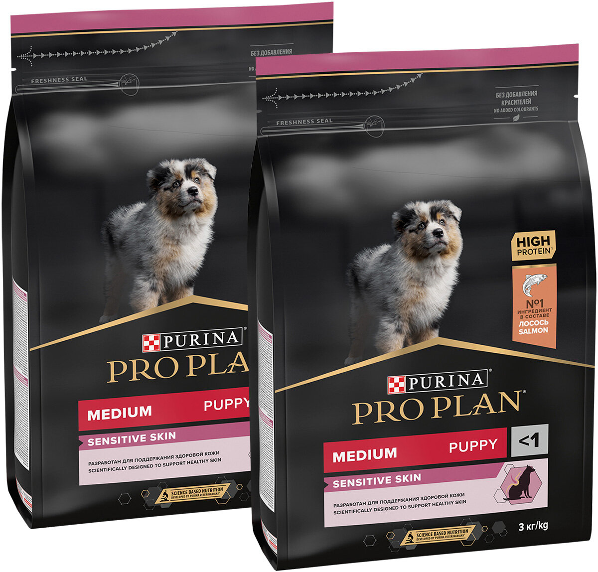 Купить PRO PLAN PUPPY MEDIUM SENSITIVE SKIN для щенков средних пород с чувствительной кожей с лососем (3 + 3 кг)