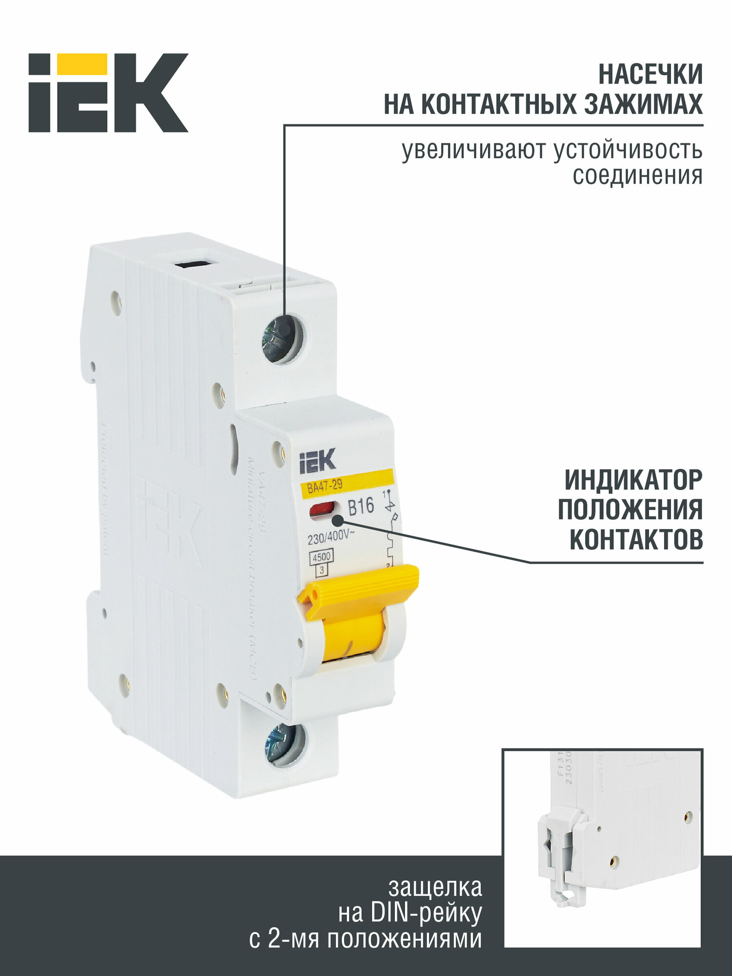 Выключатель автоматический модульный 1п B 16А 4.5кА ВА47-29 IEK MVA20-1-016-B (1 шт.)