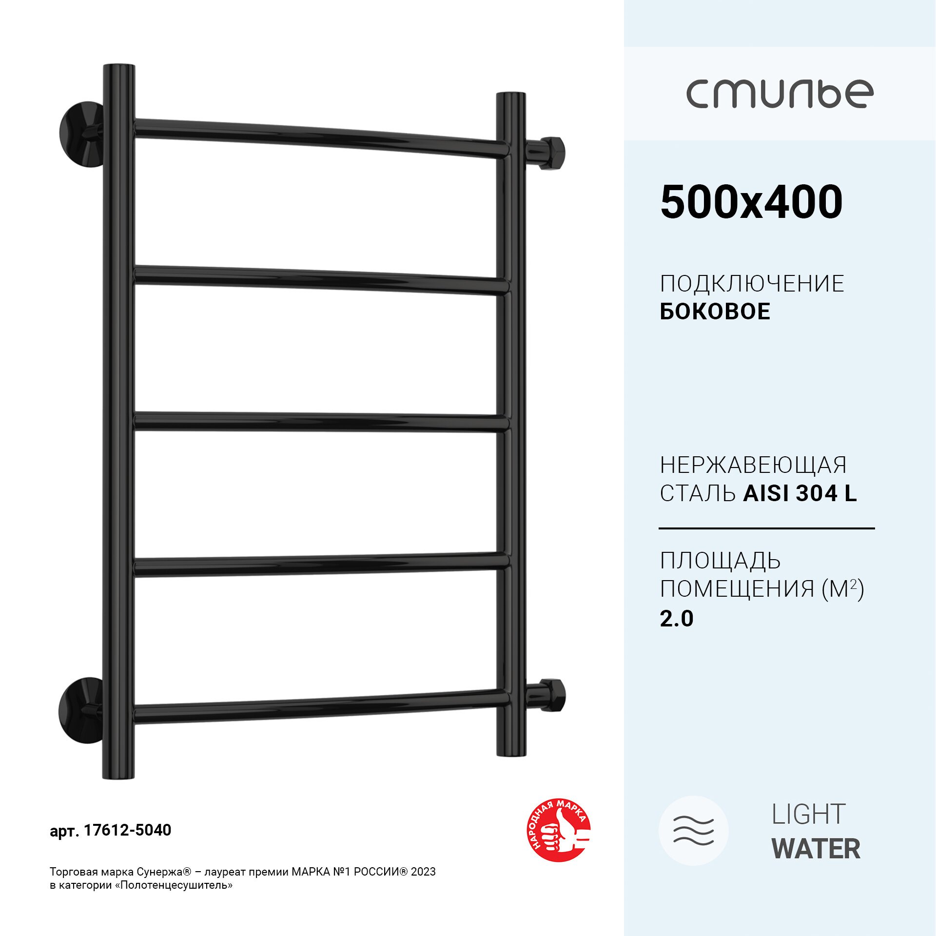 Полотенцесушитель водяной стилье "Версия-Б2" 500х600 (5) Г 18 / черный
