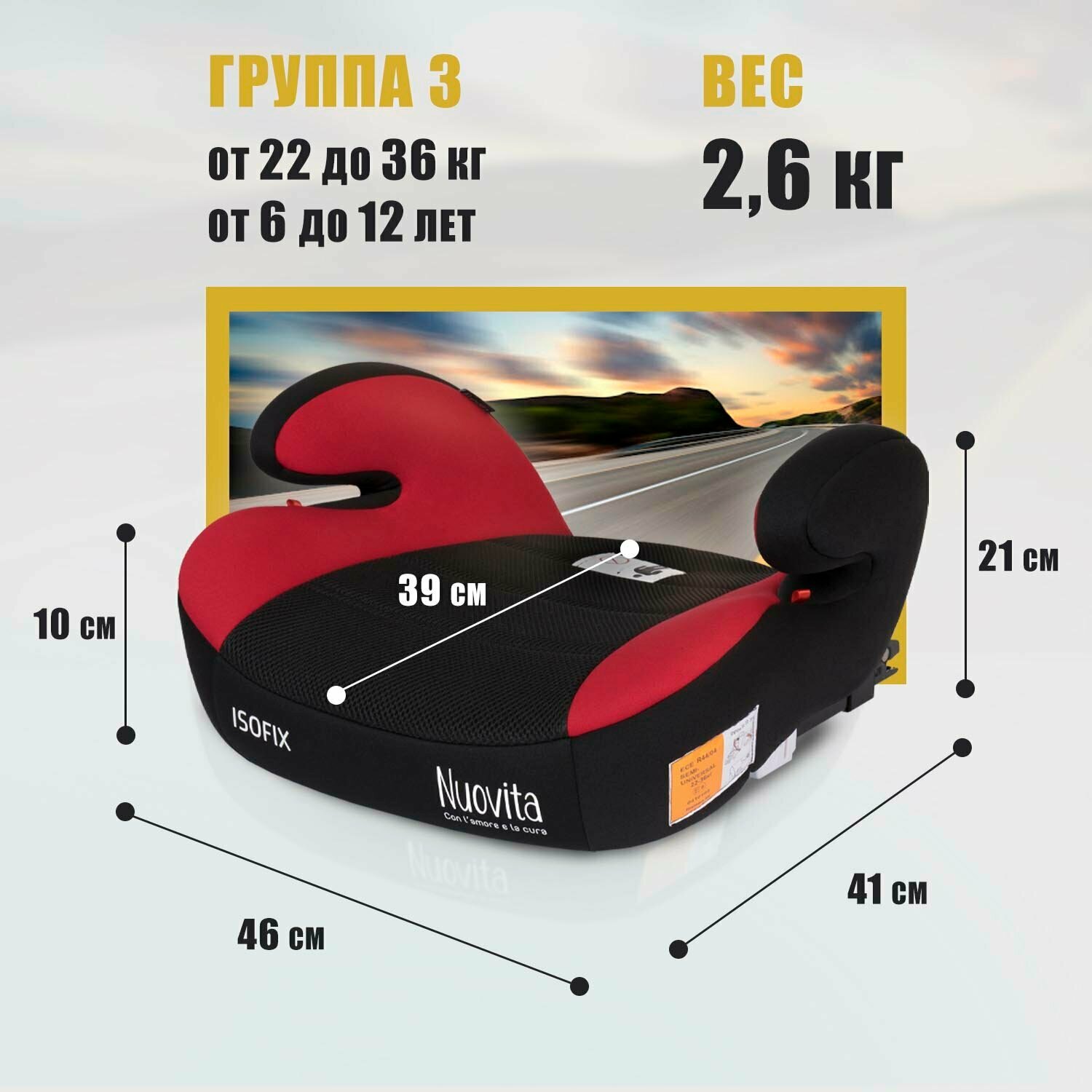 Автокресло/Бустер Nuovita Maczione NBi-1, Группа 3, 22-36 кг (от 6 до 12 лет) (Rosso/Красный)