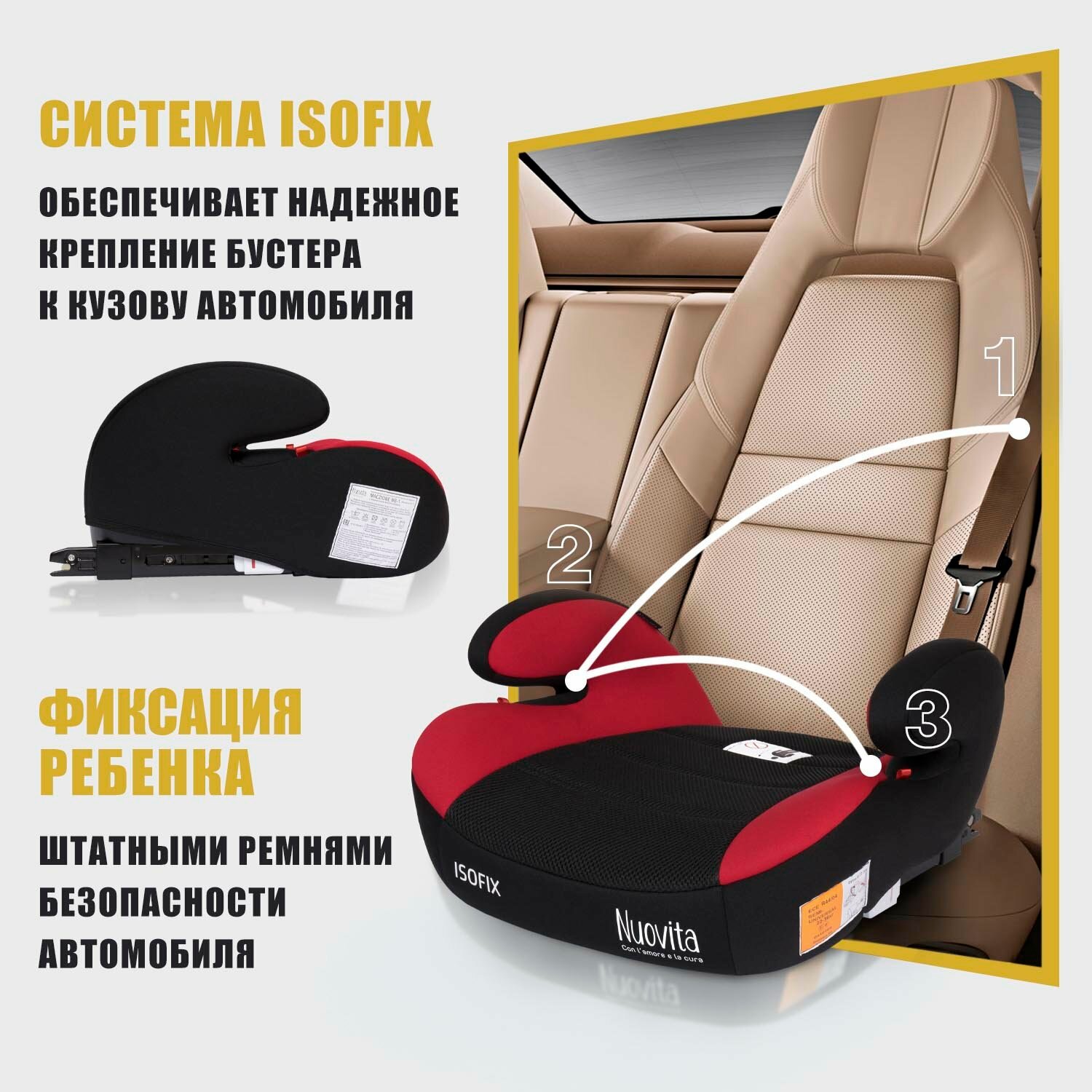 СохранитьАвтокресло/Бустер автомобильный для детей с креплением Isofix Nuovita Maczione NBi-1, Группа 3, 22-36 кг (от 6 до 12 лет) (Rosso/Красный) интересное: