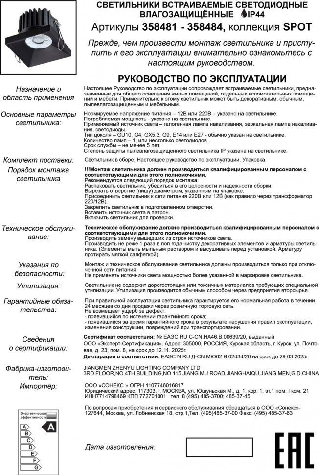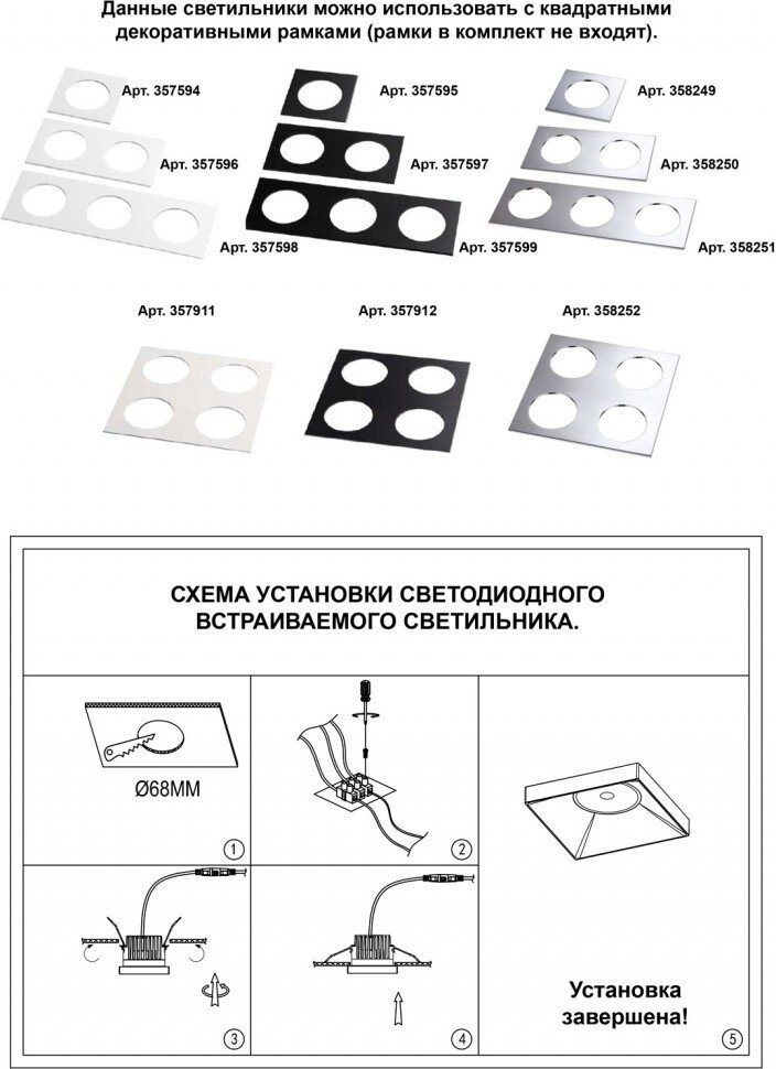 | Комплектация | Встраиваемые светильники Novotech 358484 |