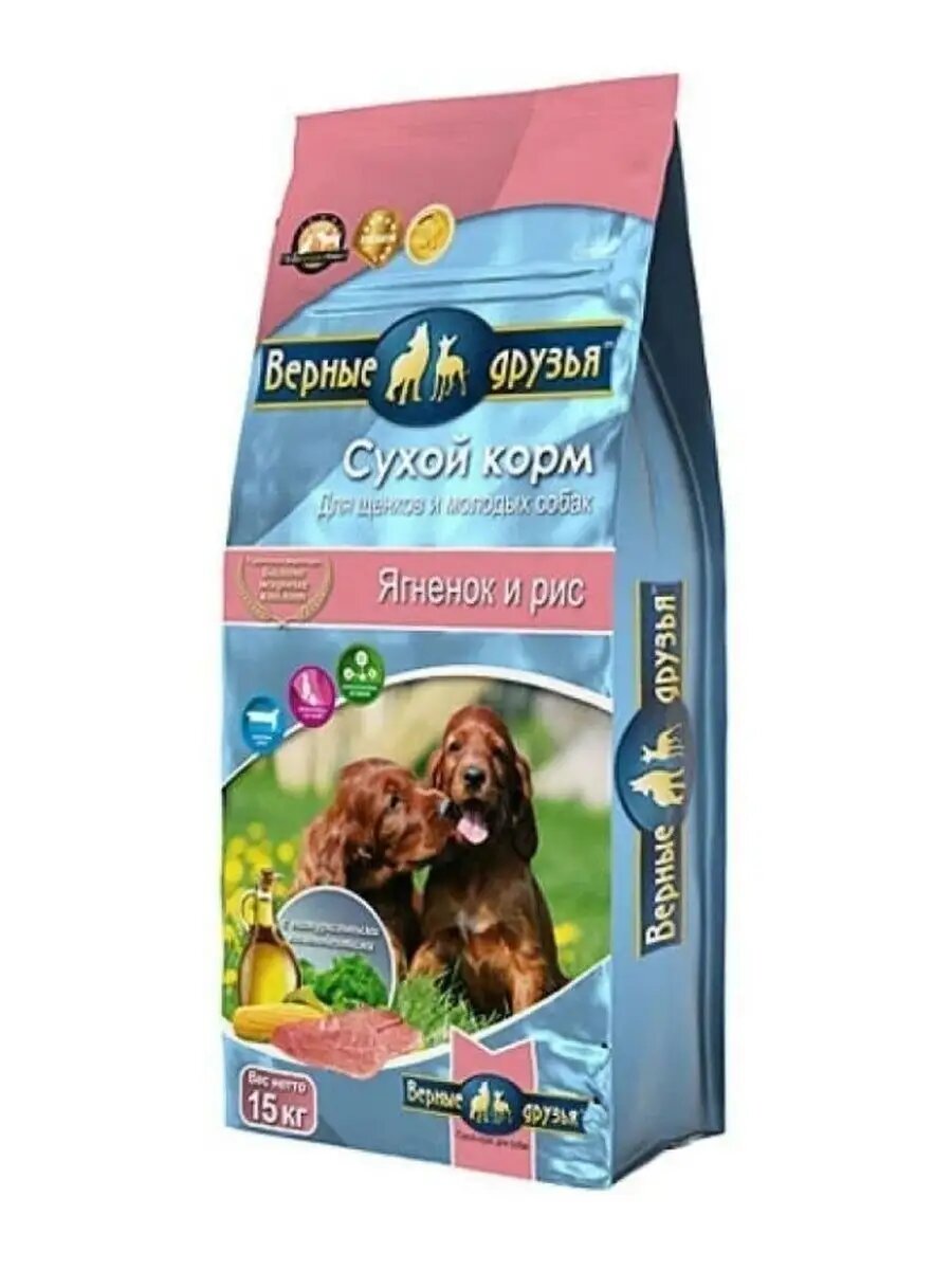 Сухой корм для собак Верные друзья, ягненок с рисом 1 уп. 15 кг