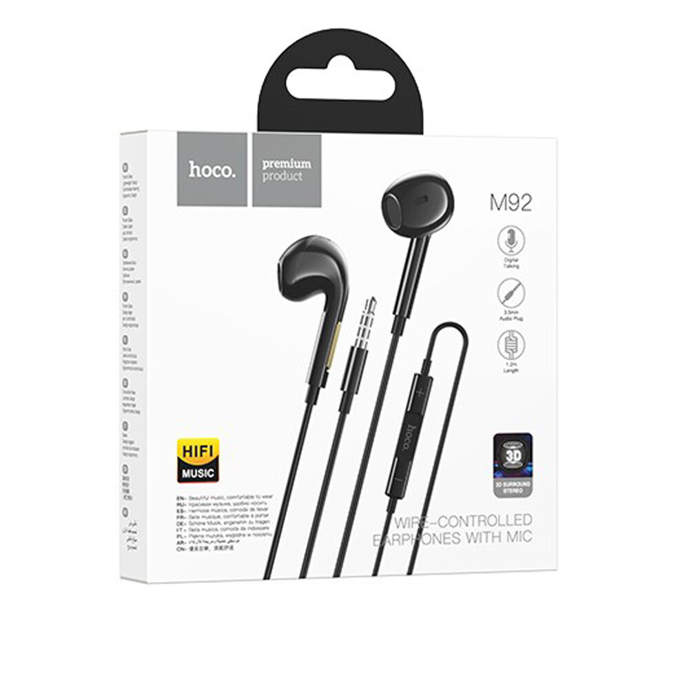 Проводные наушники вкладыши HOCO M92 Plumelet, AUX Jack 3.5mm, 1.2 м, черный