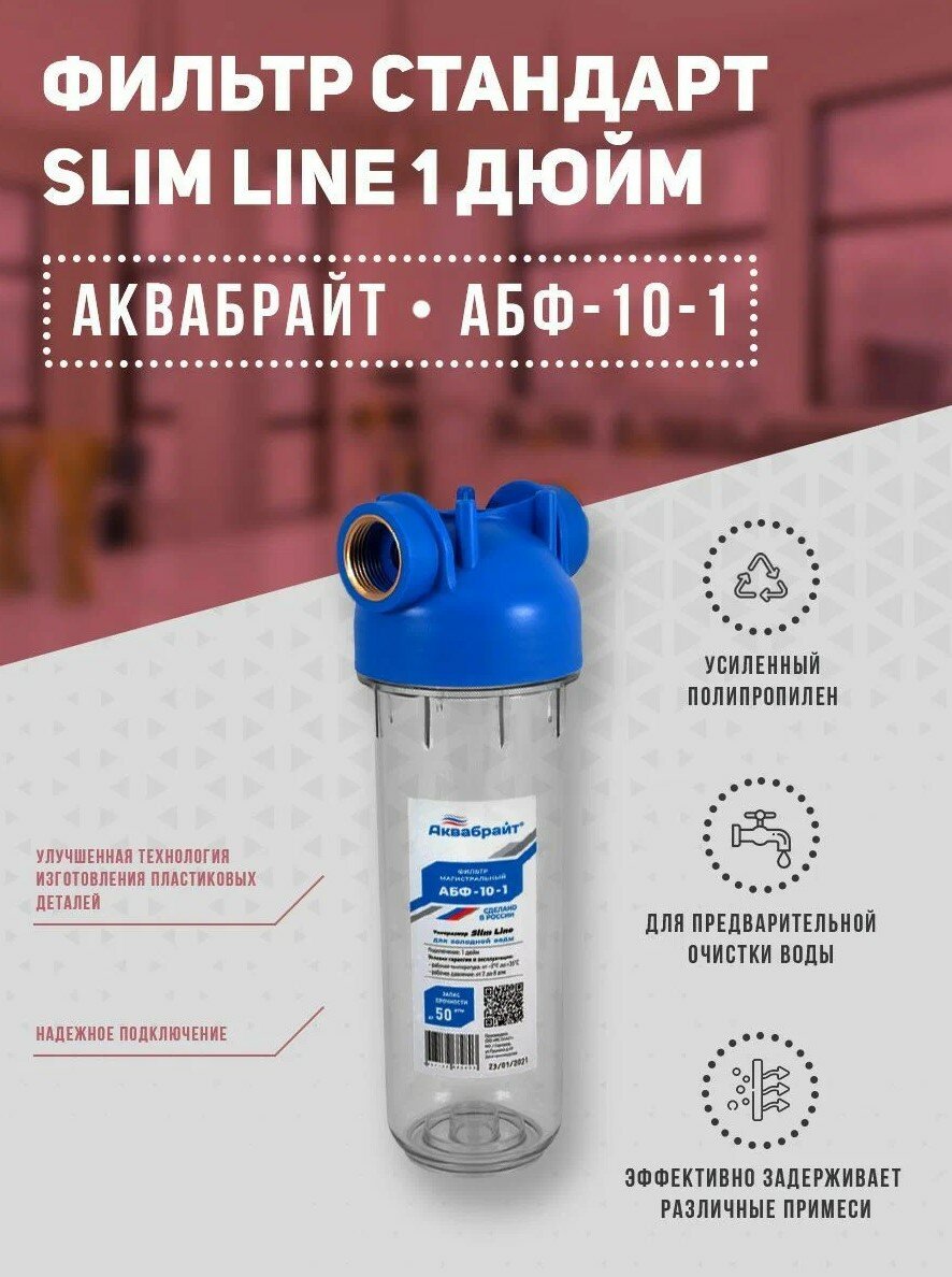 Фильтр Аквабрайт АБФ-10-1, стандарта SLIM LINE, подключение 1 дюйм