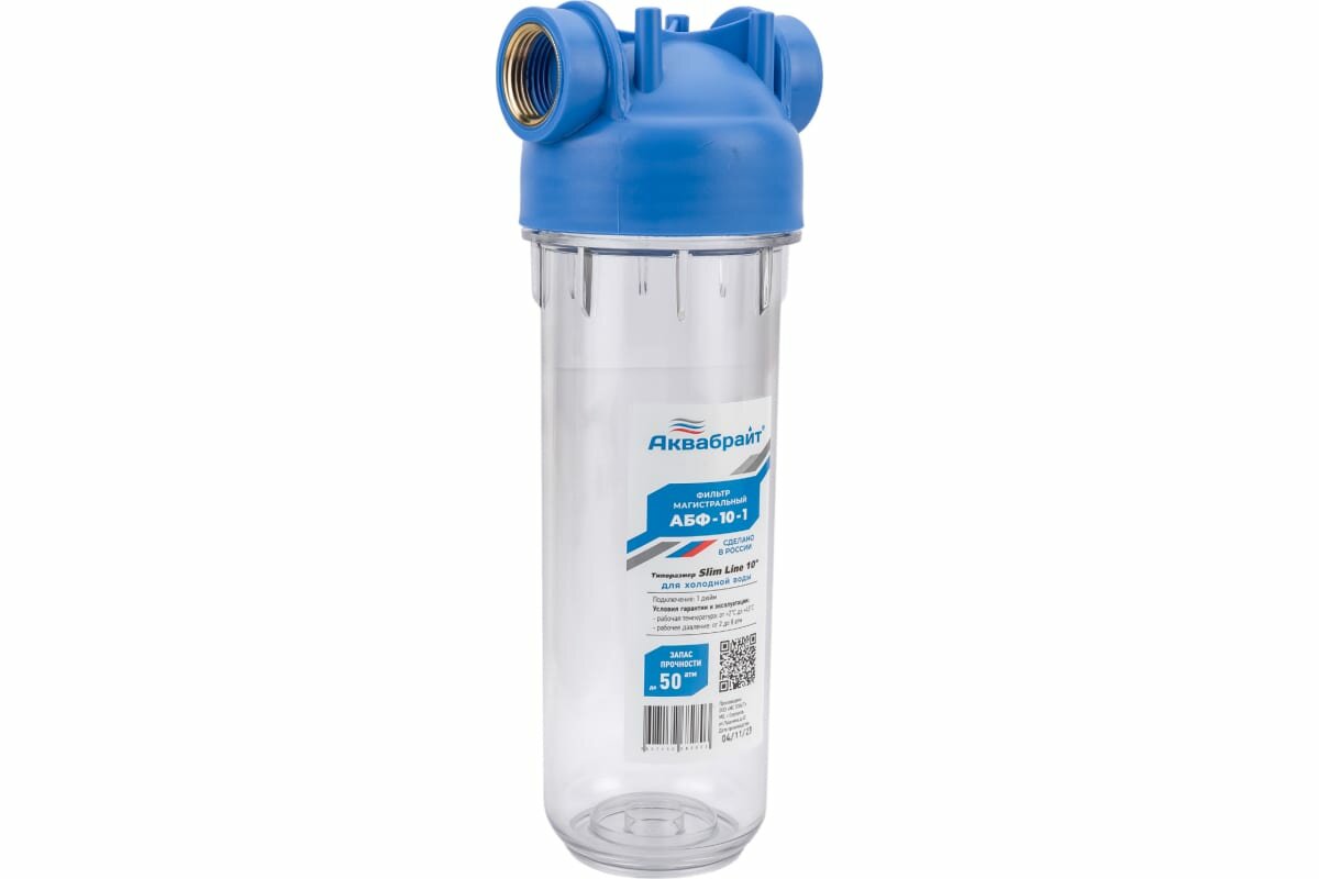 Магистральный фильтр 1" Аквабрайт для холодной воды АБФ-10-1/корпус фильтра пластиковый прозрачный/фильтра 10sl