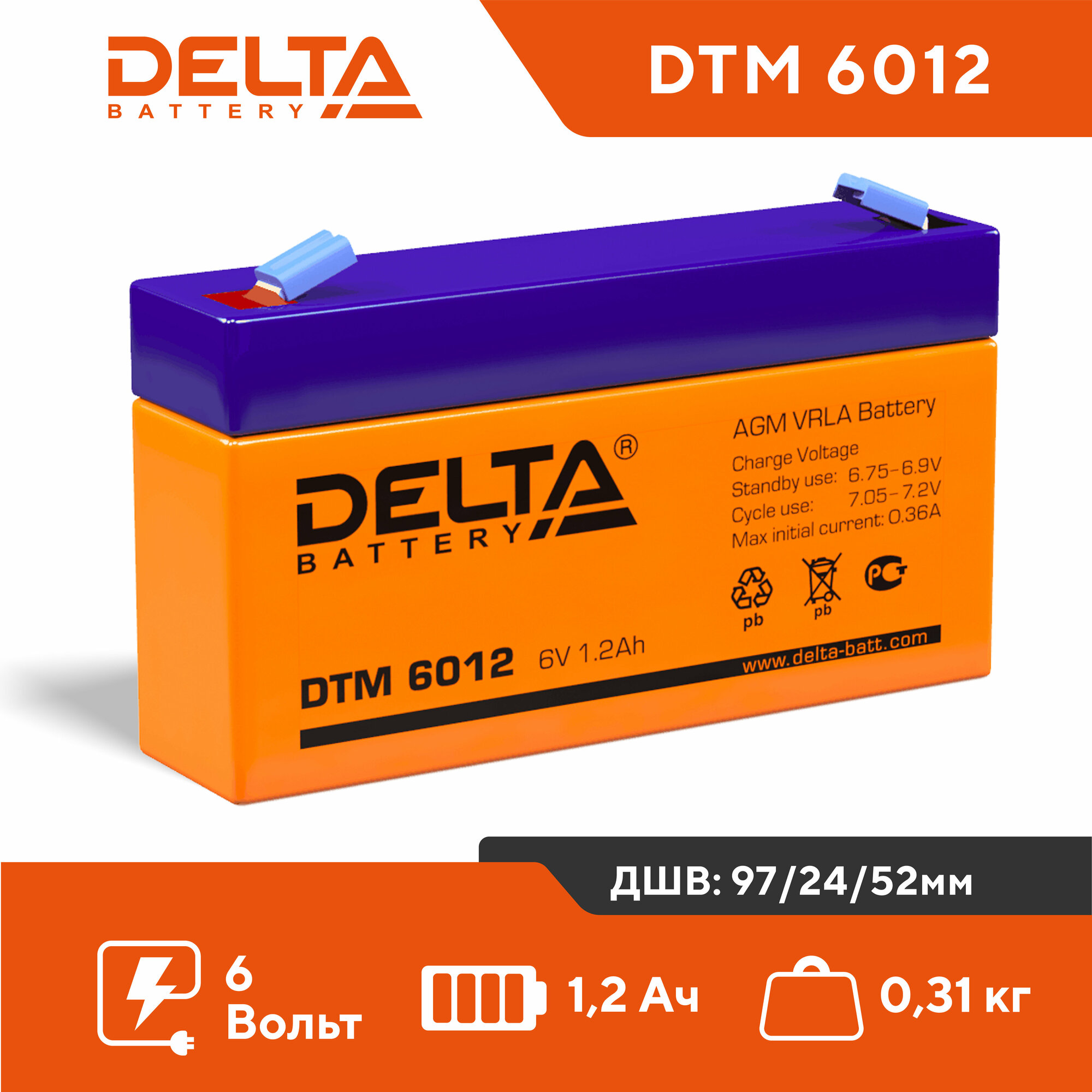 Аккумулятор Ибп 6В 1.2А.ч. Delta (Dtm 6012) (97Х24х58) Agm DELTA battery арт. DTM6012