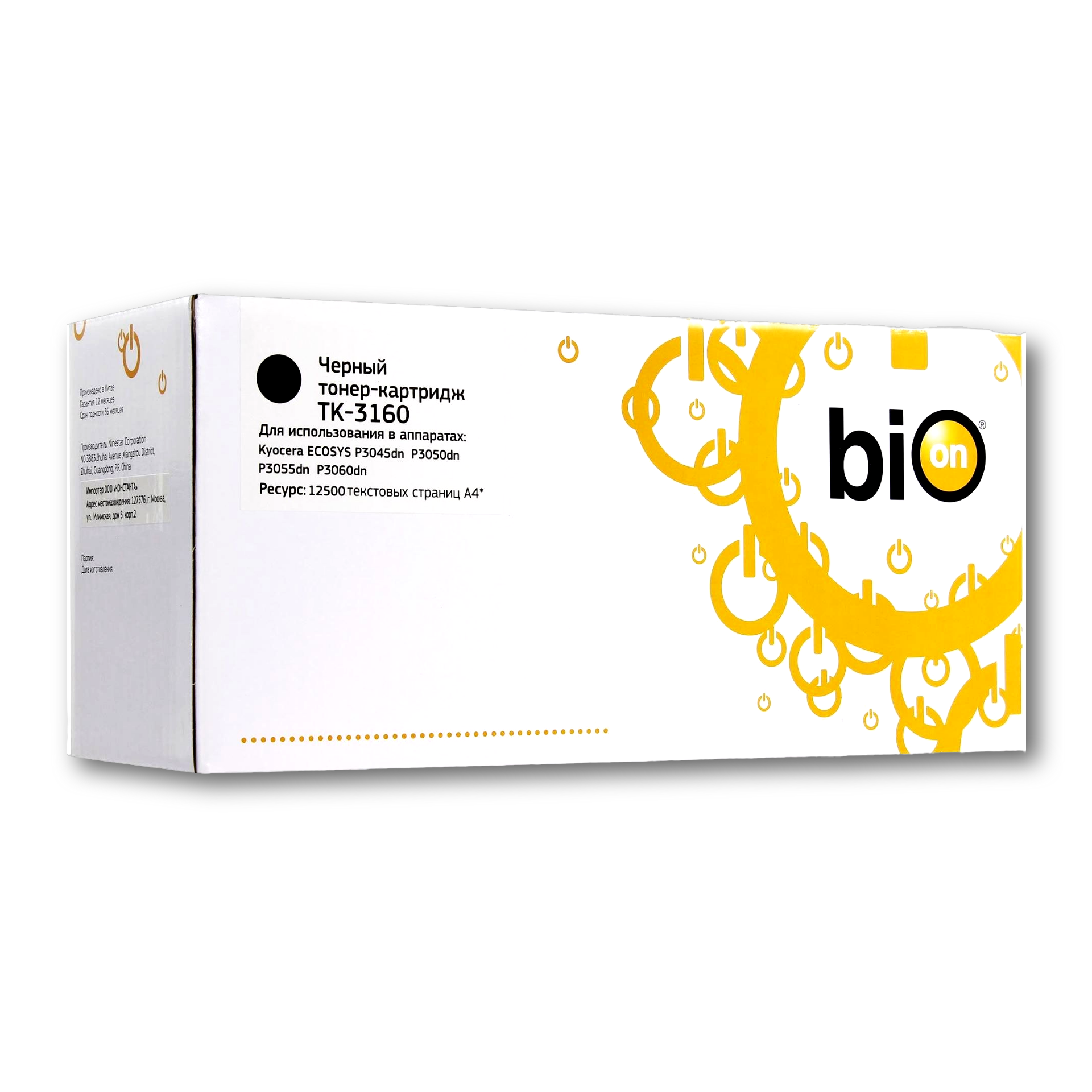 Картридж лазерный Bion TK-3160 для Kyocera ECOSYS P3055dn/P3060dn/P3045dn/P3050dn/P3260dn/M3145dn (12500 стр.), Черный (BCR-TK-3160)