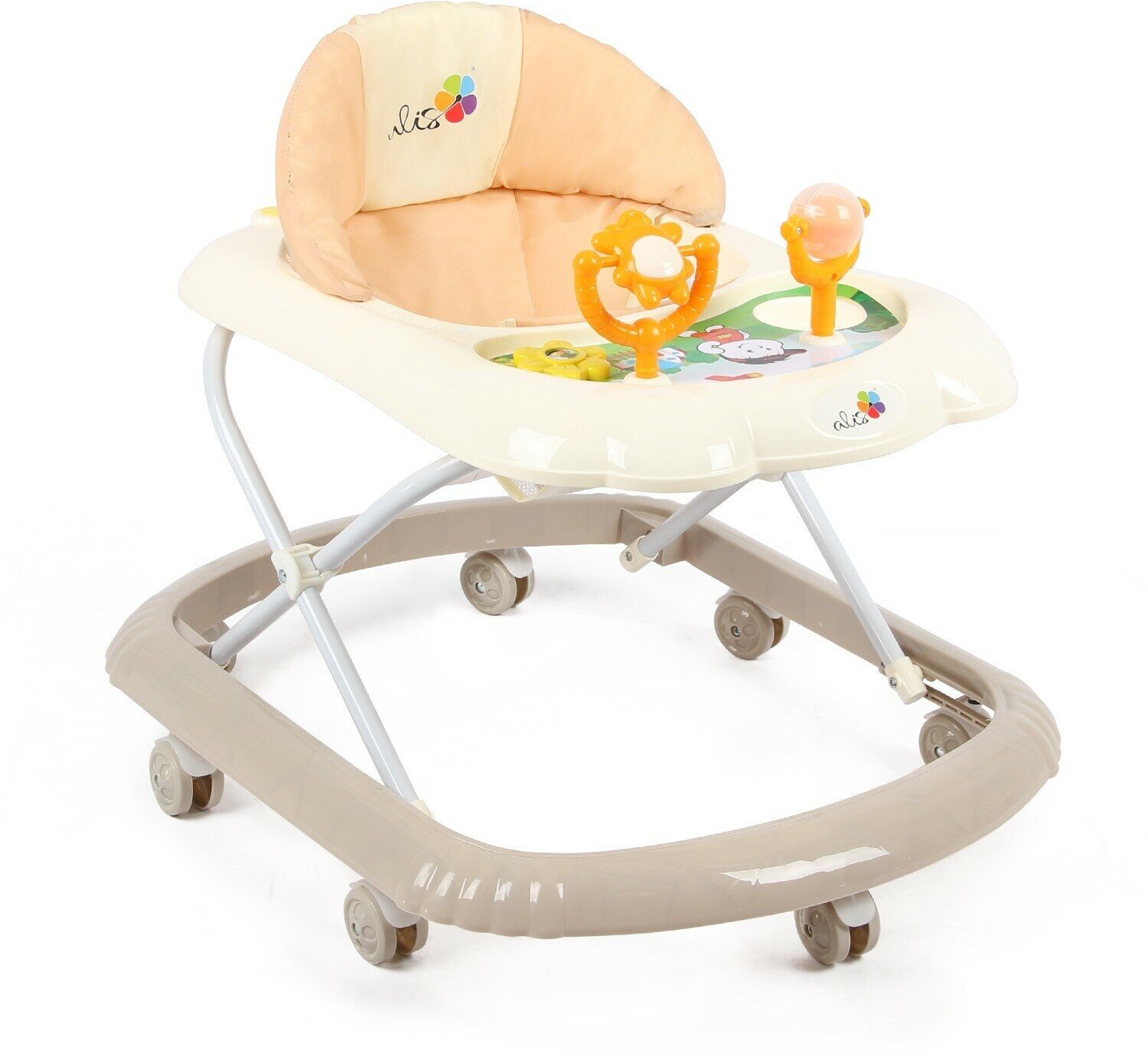 Alis Ходунки «Верный друг», 7 колес, муз. игрушки, бежевый/белый