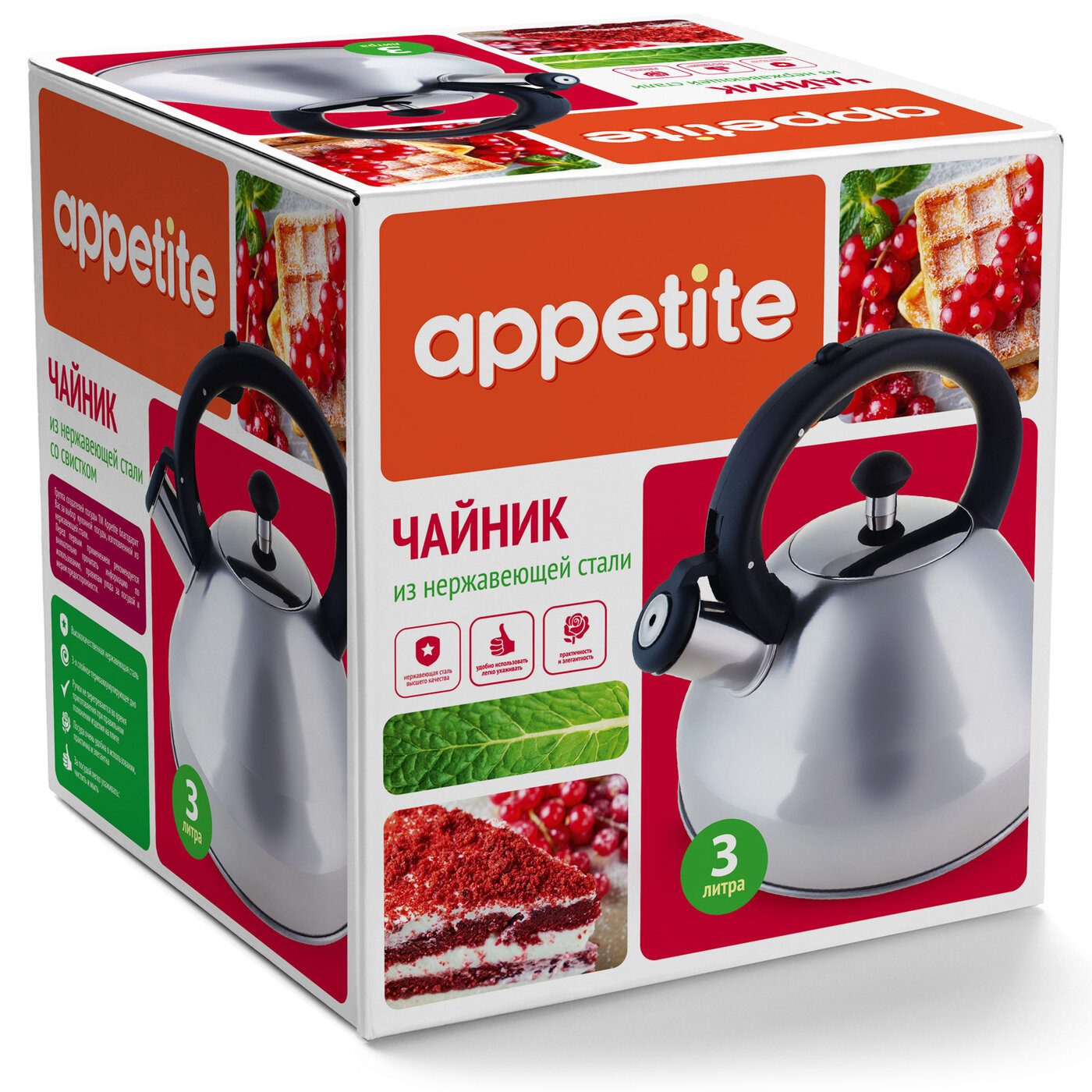 Купить Чайник для плиты со свистком Appetite из нержавеющей стали, 3 л
