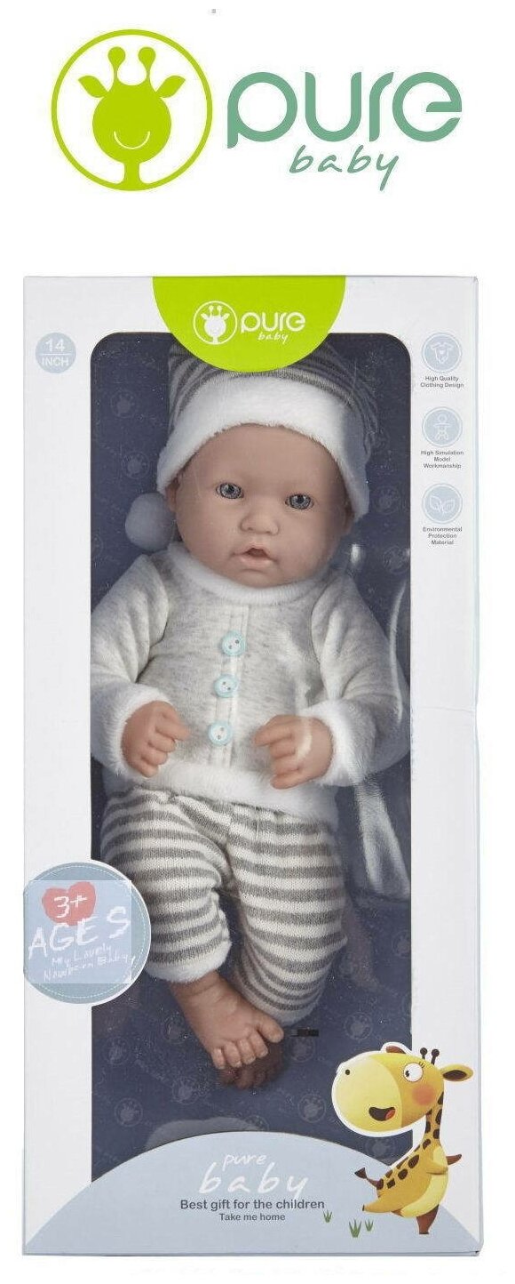 Пупс JUNFA Pure Baby 35см в кофточке, штанишках и шапочке, в коробке, интересное:
