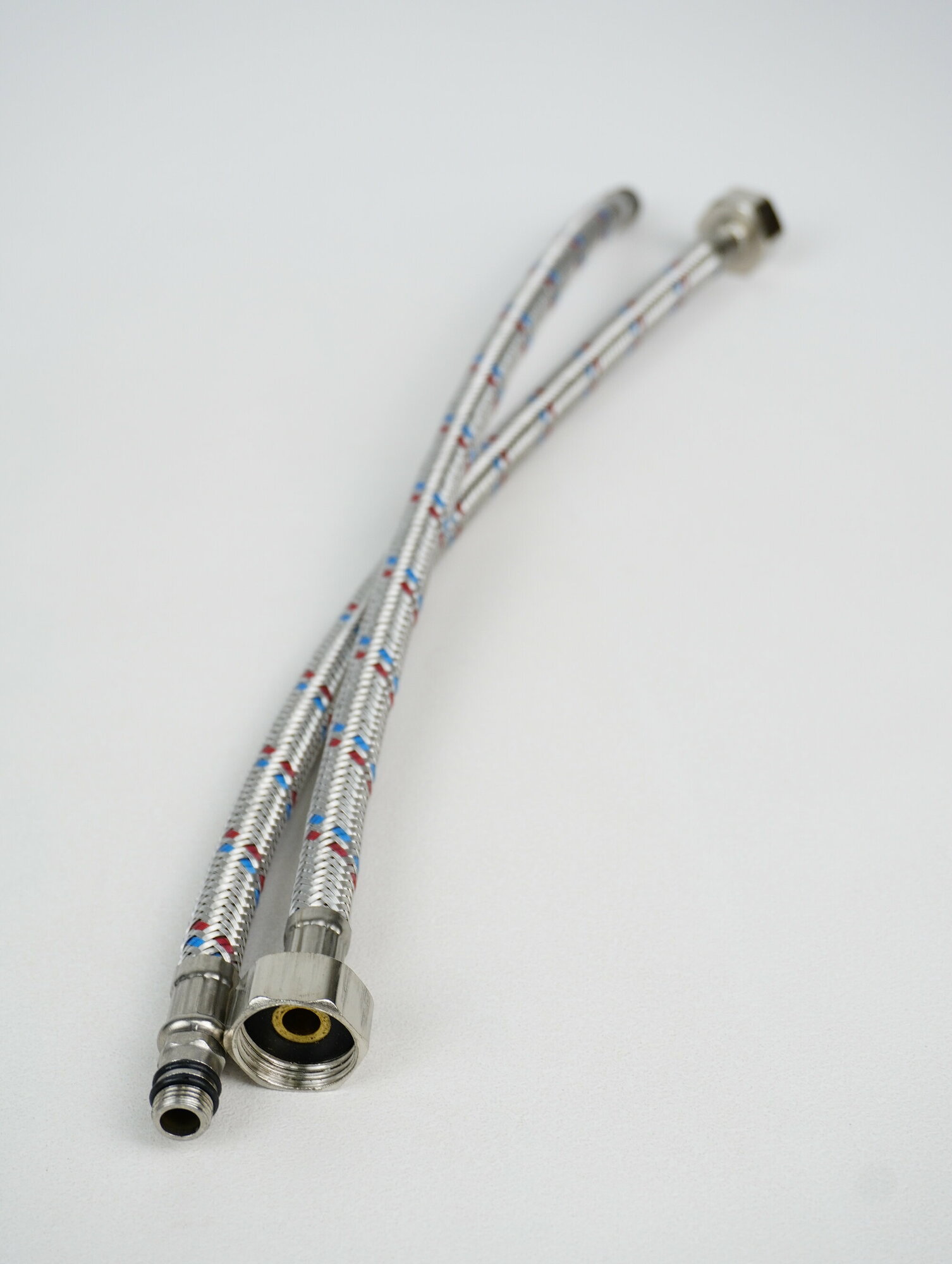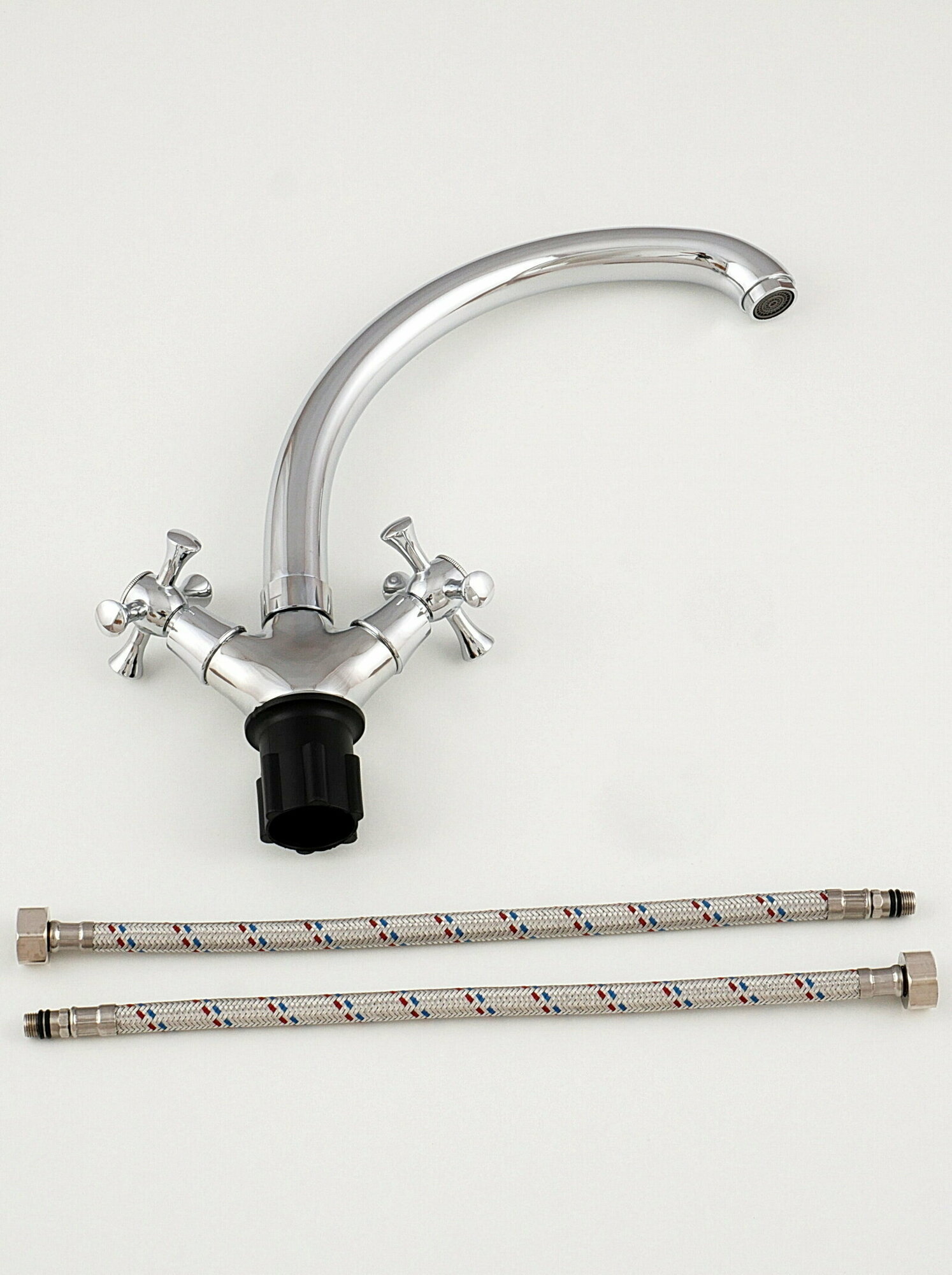 | Комплектация | смеситель, крепёж на гайке, две гибкие подводки 1/2" длиной 35 см, паспорт изделия |